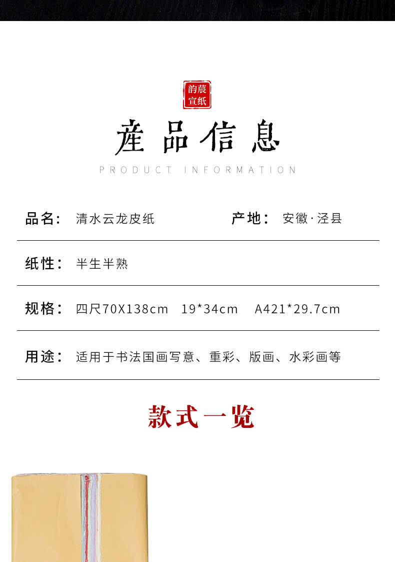 Huizhou Yuxuan colorido agua clara Yunlong papel de papel de aceite paraguas lámpara de papel de arroz en blanco de fibra gruesa decoración de papel de embalaje