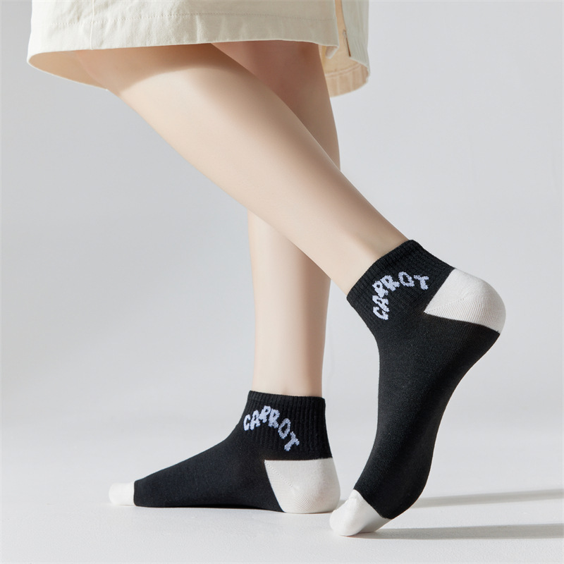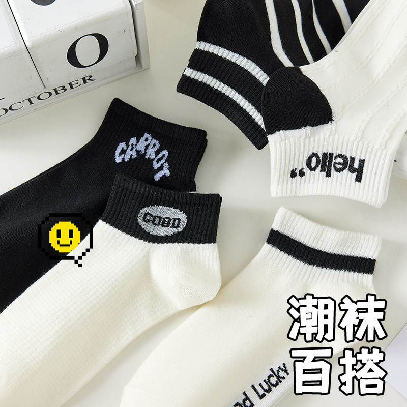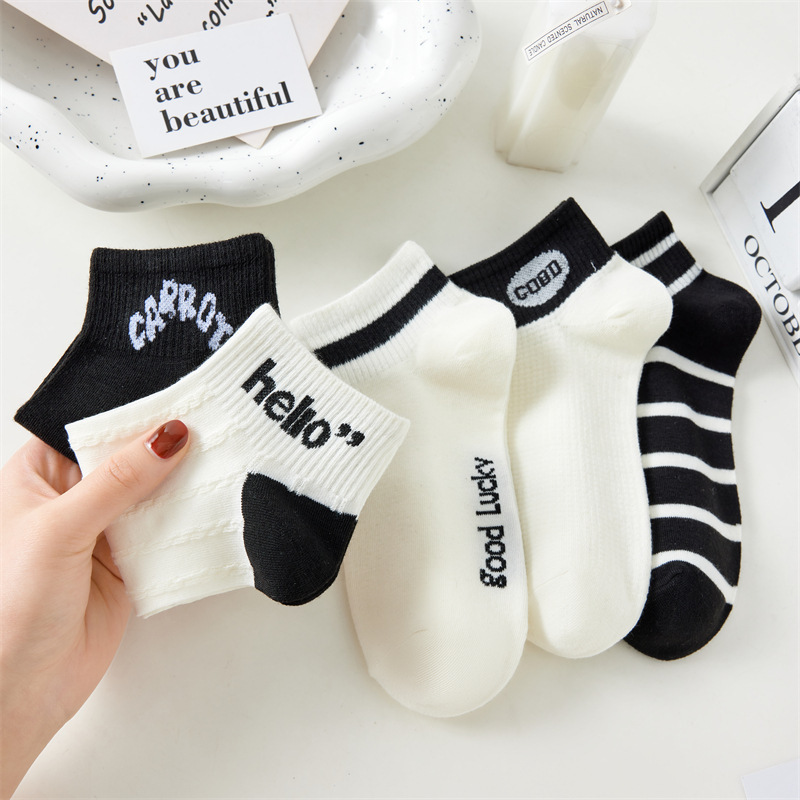 Calcetines negros y blancos de mujer calcetines dulces versátiles calcetines de mujer estricta primavera-verano estilo japonés dibujos animados de encaje de estudiantes