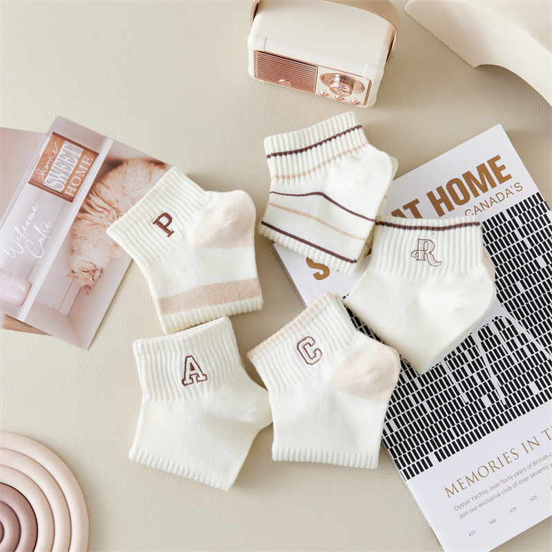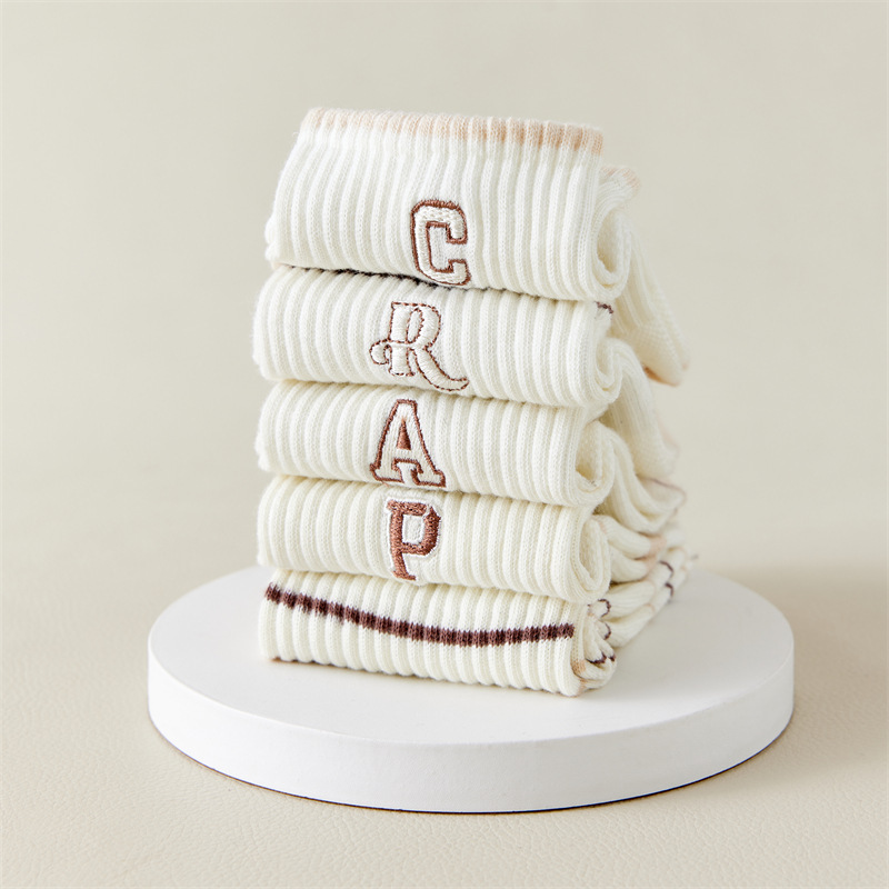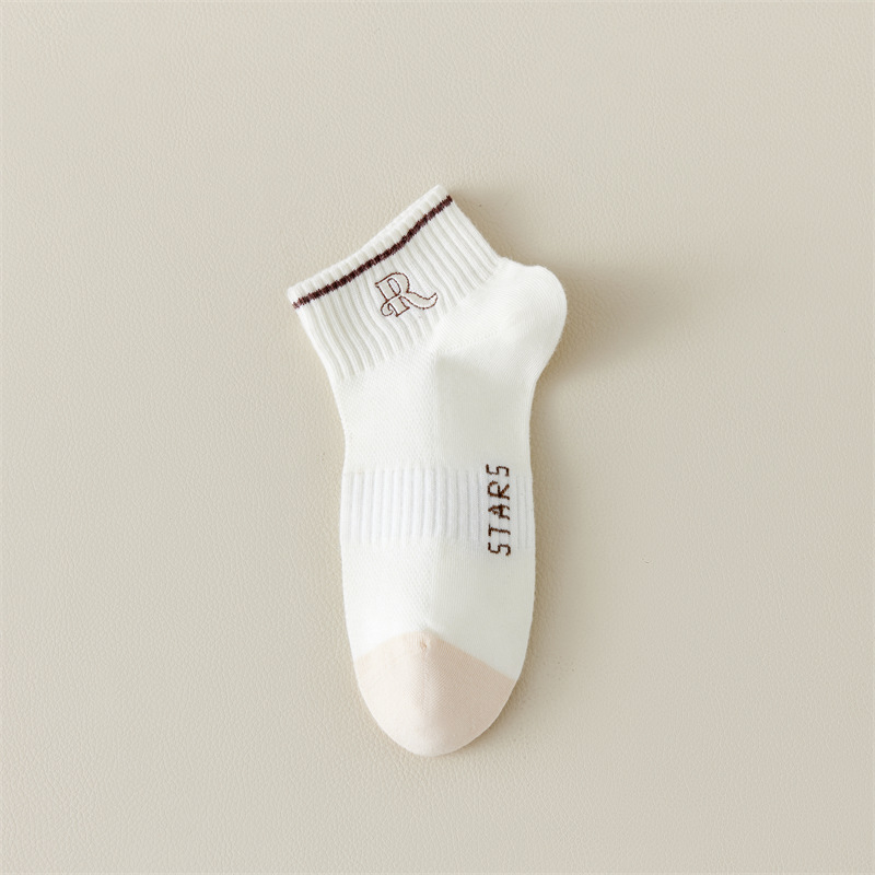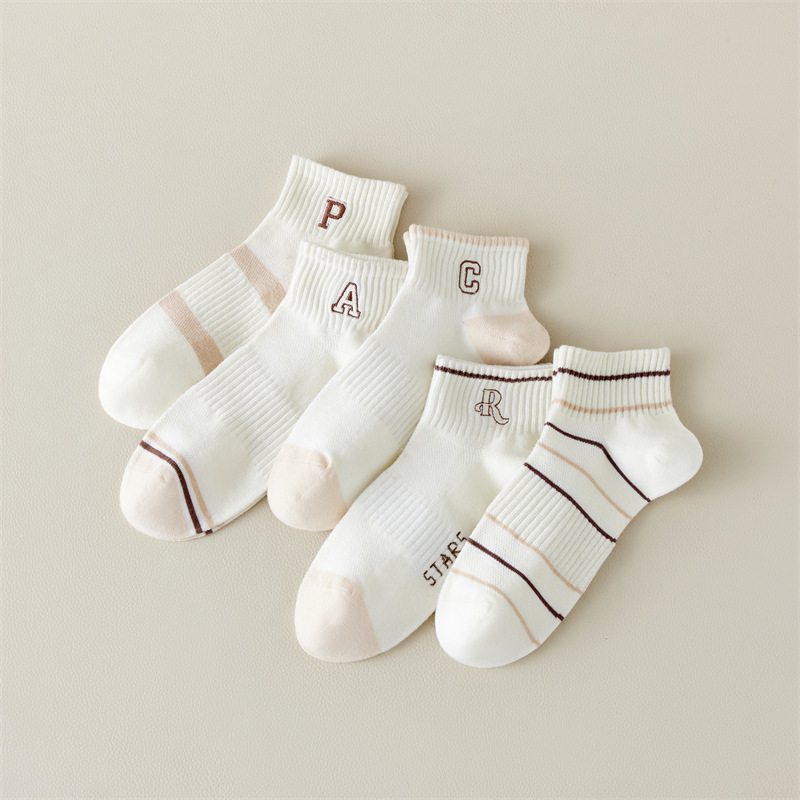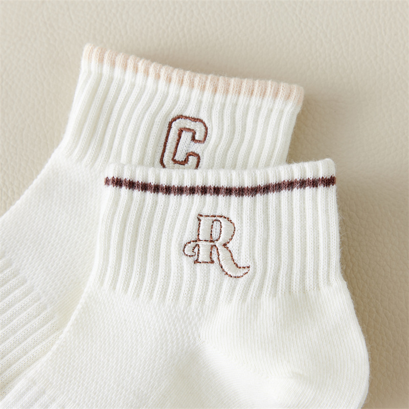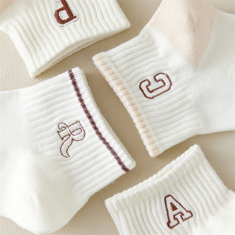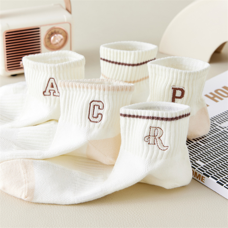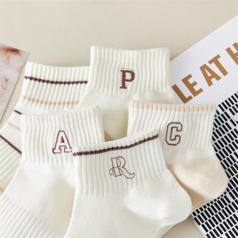 Calcetines de primavera y verano para mujer nuevo estilo claro con bordado de letras caqi calcetines de tendencia estilo coreano calcetines de malla transpirables para mujer al por mayor