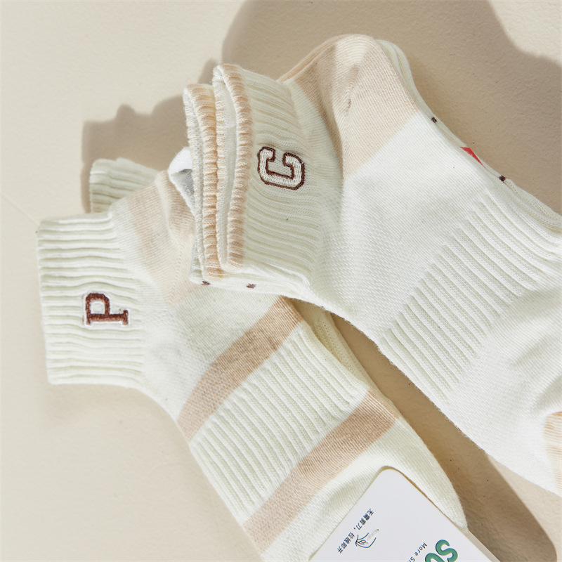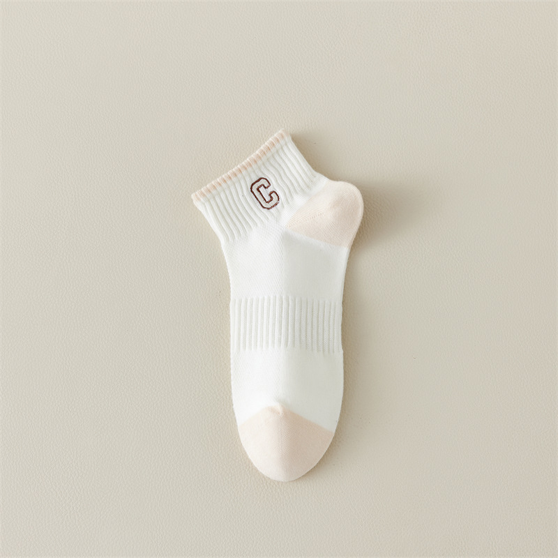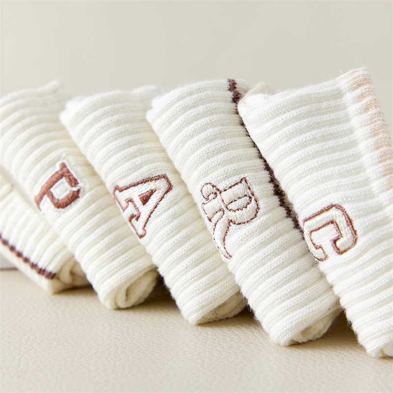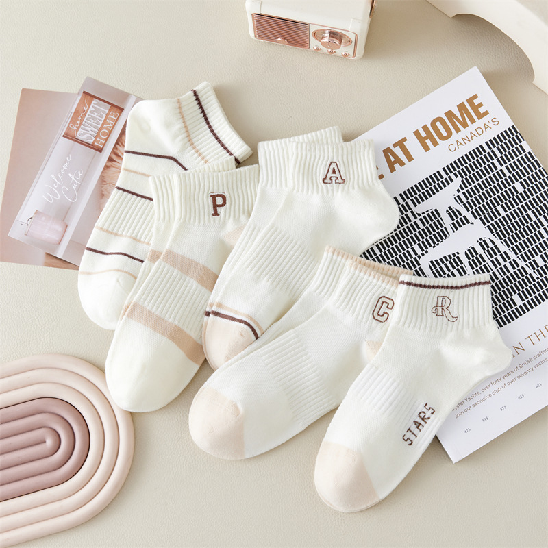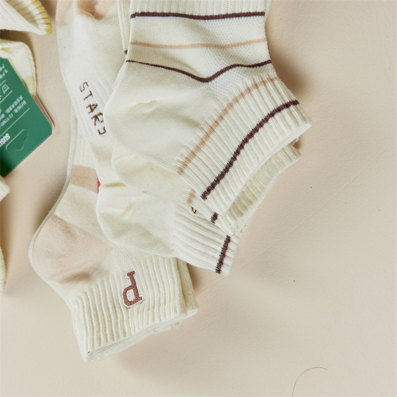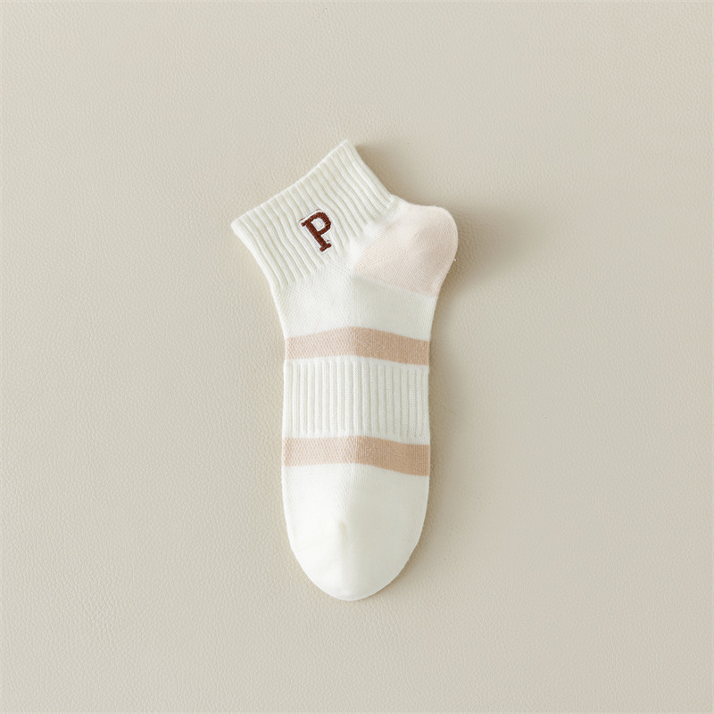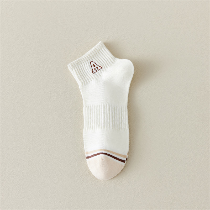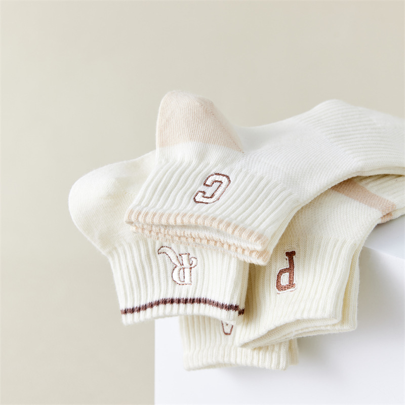 Calcetines de primavera y verano para mujer nuevo estilo claro con bordado de letras caqi calcetines de tendencia estilo coreano calcetines de malla transpirables para mujer al por mayor