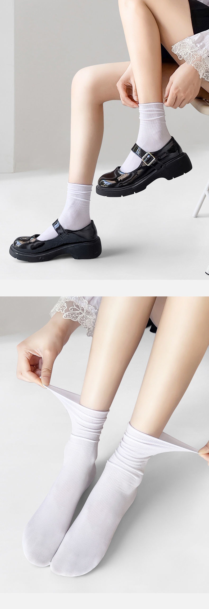 Medias de verano delgadas calcetines blancas y negras calcetines de hielo de verano calcetines de hielo de pantorrilla japonesa calcetines de hielo