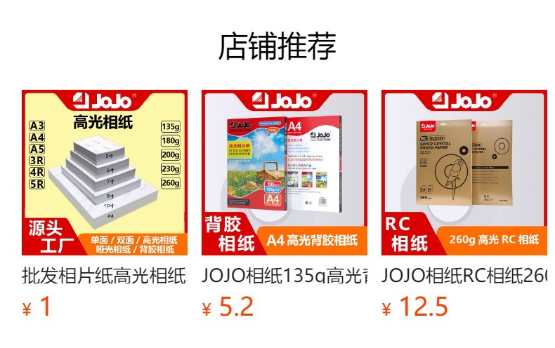 Papel fotográfico JOJO 135g Papel fotográfico de alto brillo A4 Papel fotográfico de una cara Papel de impresión por inyección de tinta Papel fotográfico brillante 50 hojas