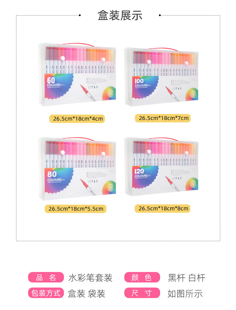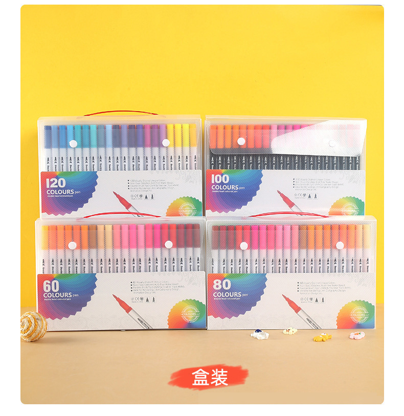 Bolígrafo de acuarela transfronterizo de doble cabeza en PVC caja de 120 colores pincel de línea de gancho fácil de lavar pincel infantil al por mayor