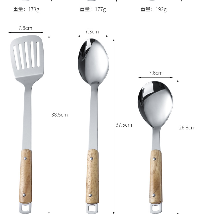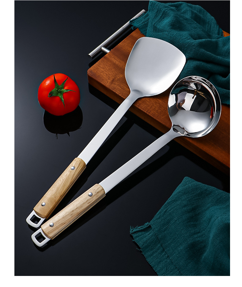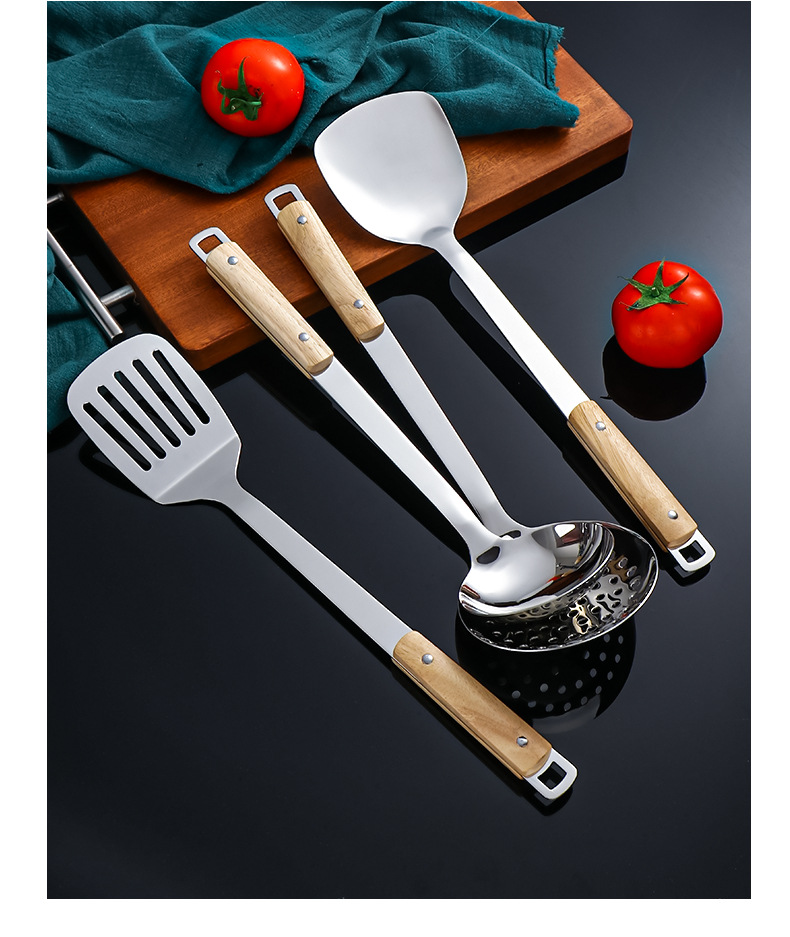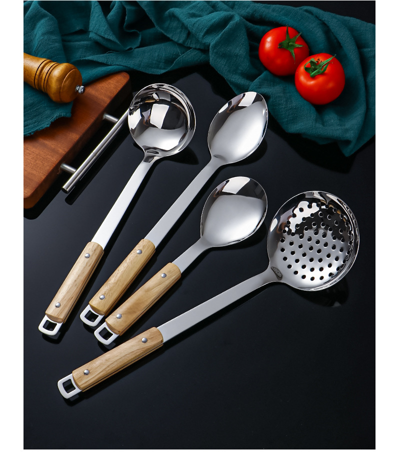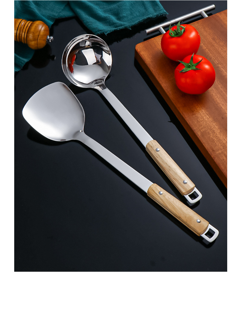 Utensilios de cocina de grano de madera de imitación creativa de acero inoxidable, cuchara de cocina, pala de cocina, pala de cocina, espátula doméstica, colador de avena, restaurante