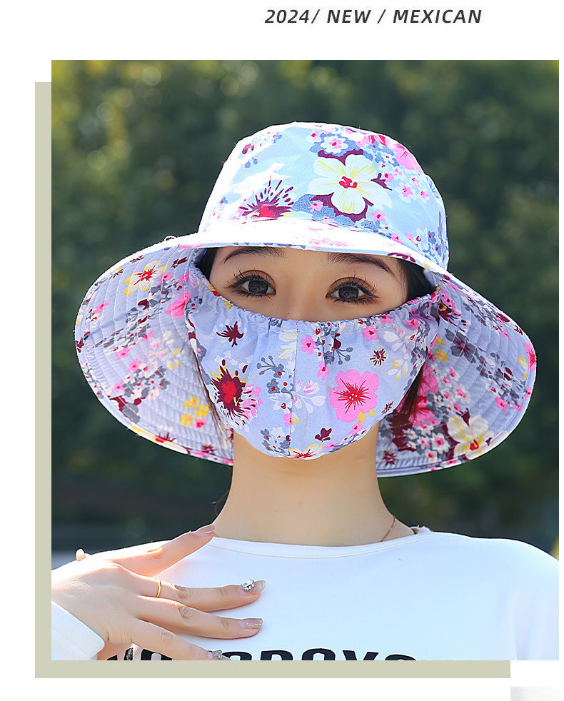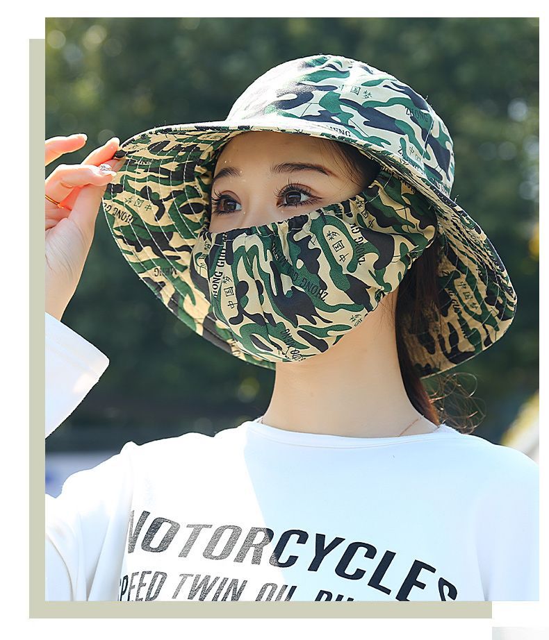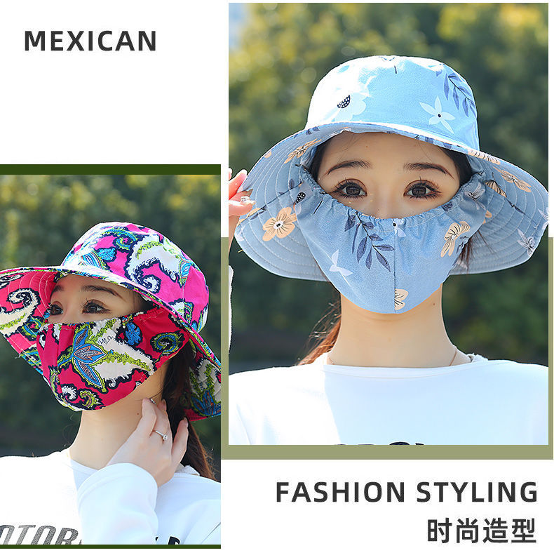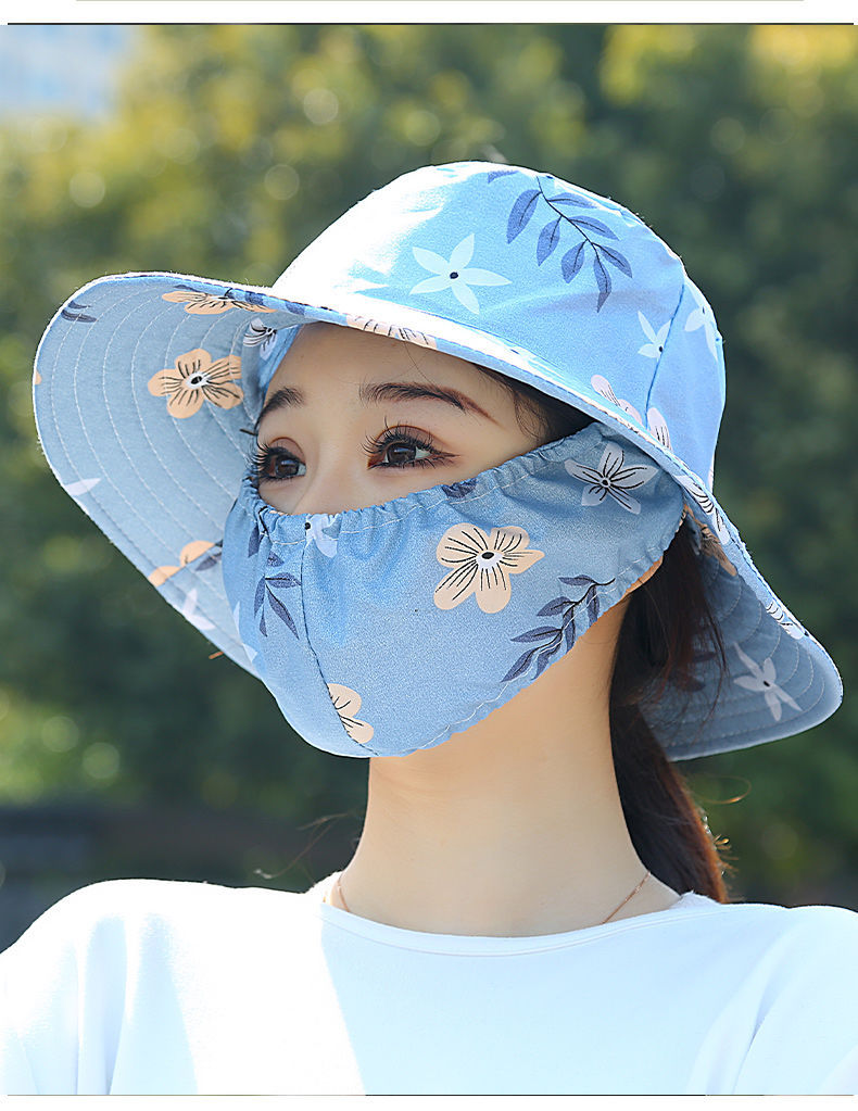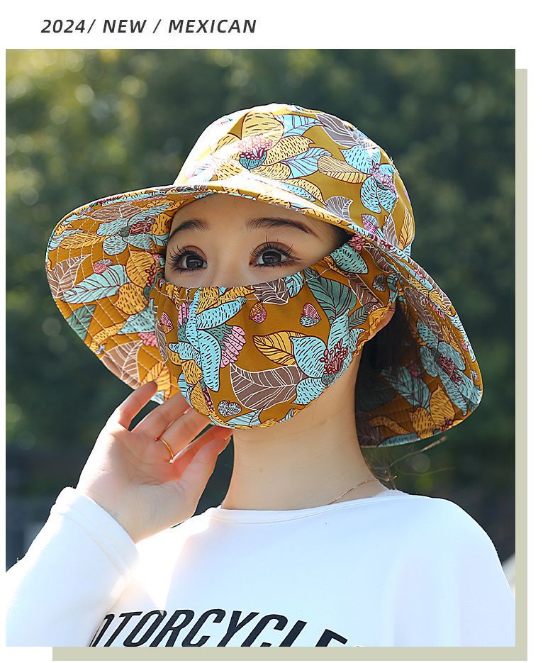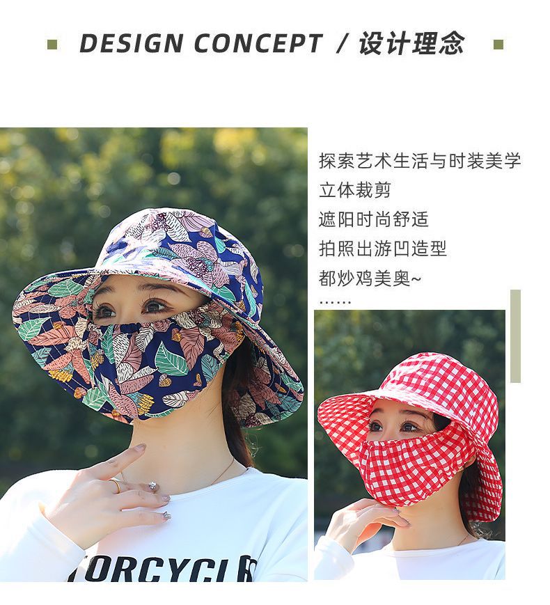 Nuevo sombrero de sombrero de sol para mujeres de verano toda la cara tipo sombrero de protección solar que cubre la cara anti-UV sombrero de trabajo seco sombrero de té sombrero de sol