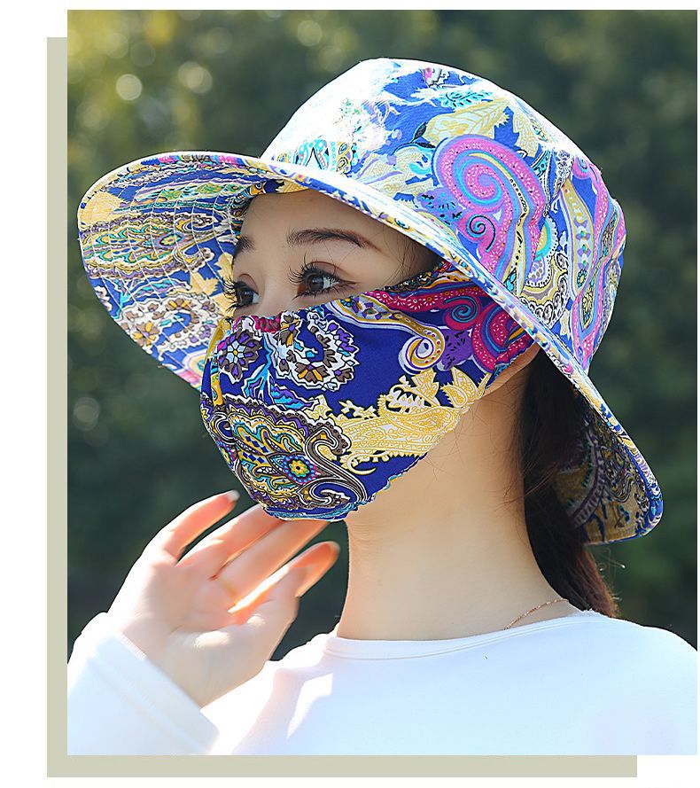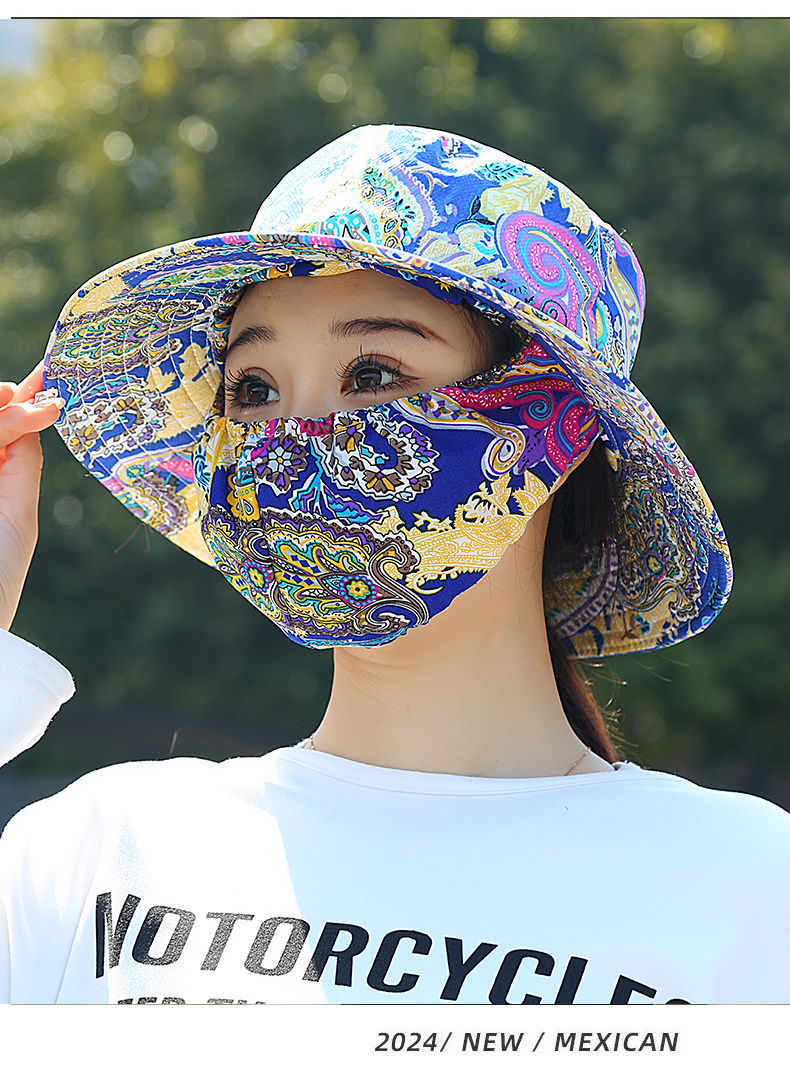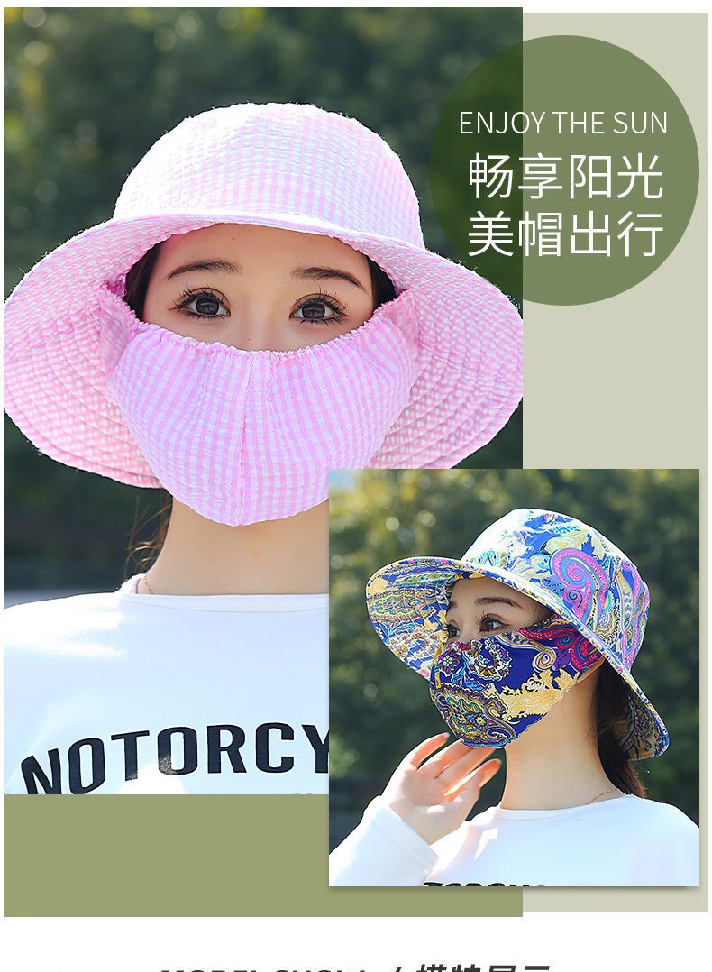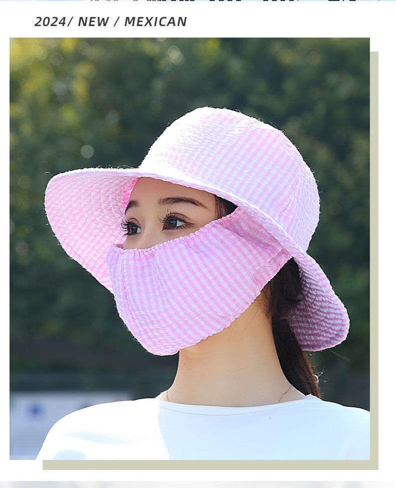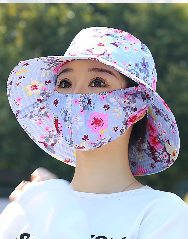 Nuevo sombrero de sombrero de sol para mujeres de verano toda la cara tipo sombrero de protección solar que cubre la cara anti-UV sombrero de trabajo seco sombrero de té sombrero de sol