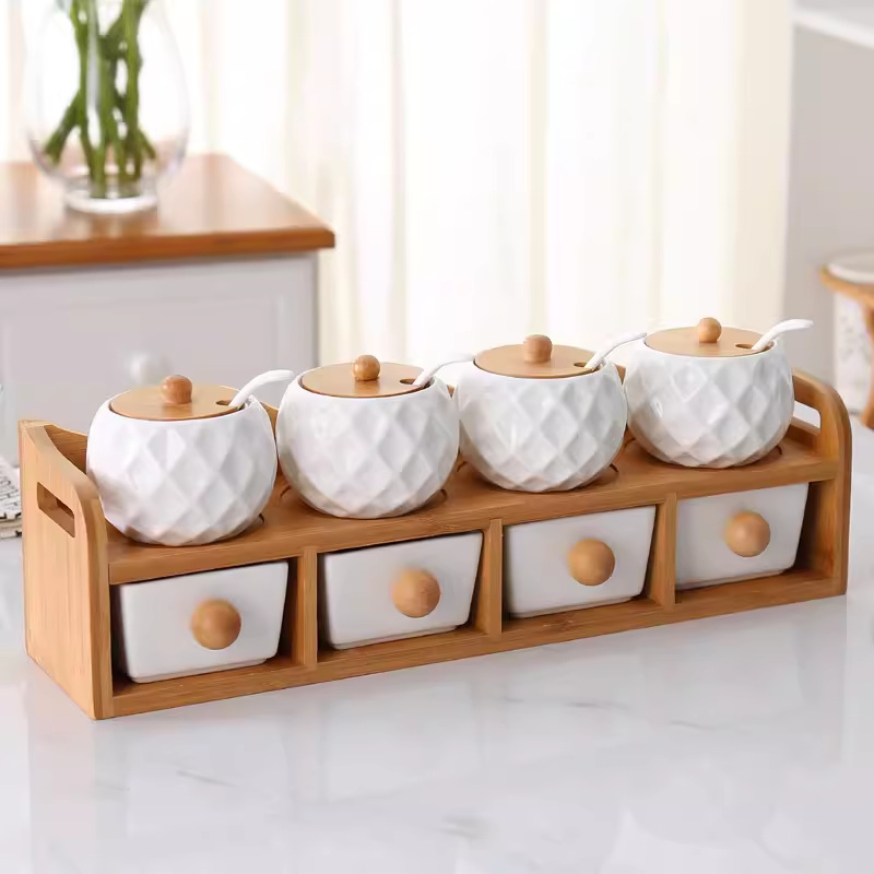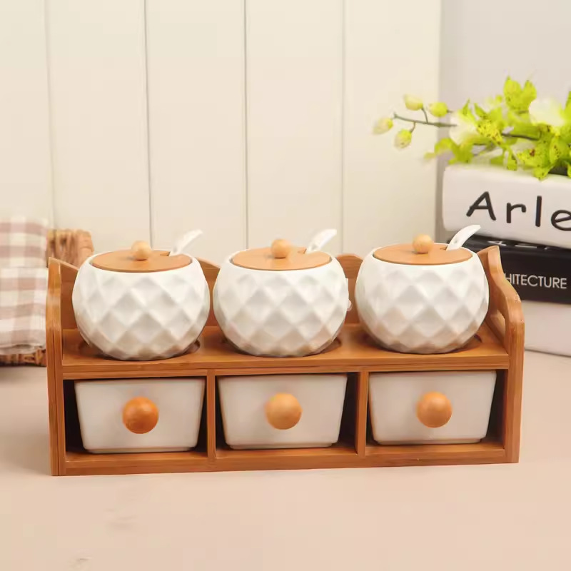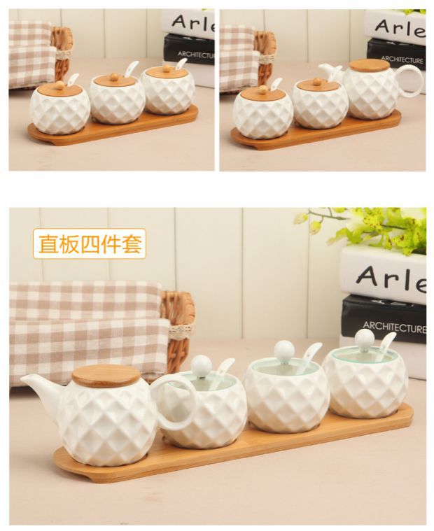 Botella de condimento de cerámica lata de cocina caja de condimento lata de sal azúcar MSG caja de condimento pimienta casera lata de condimento pimienta