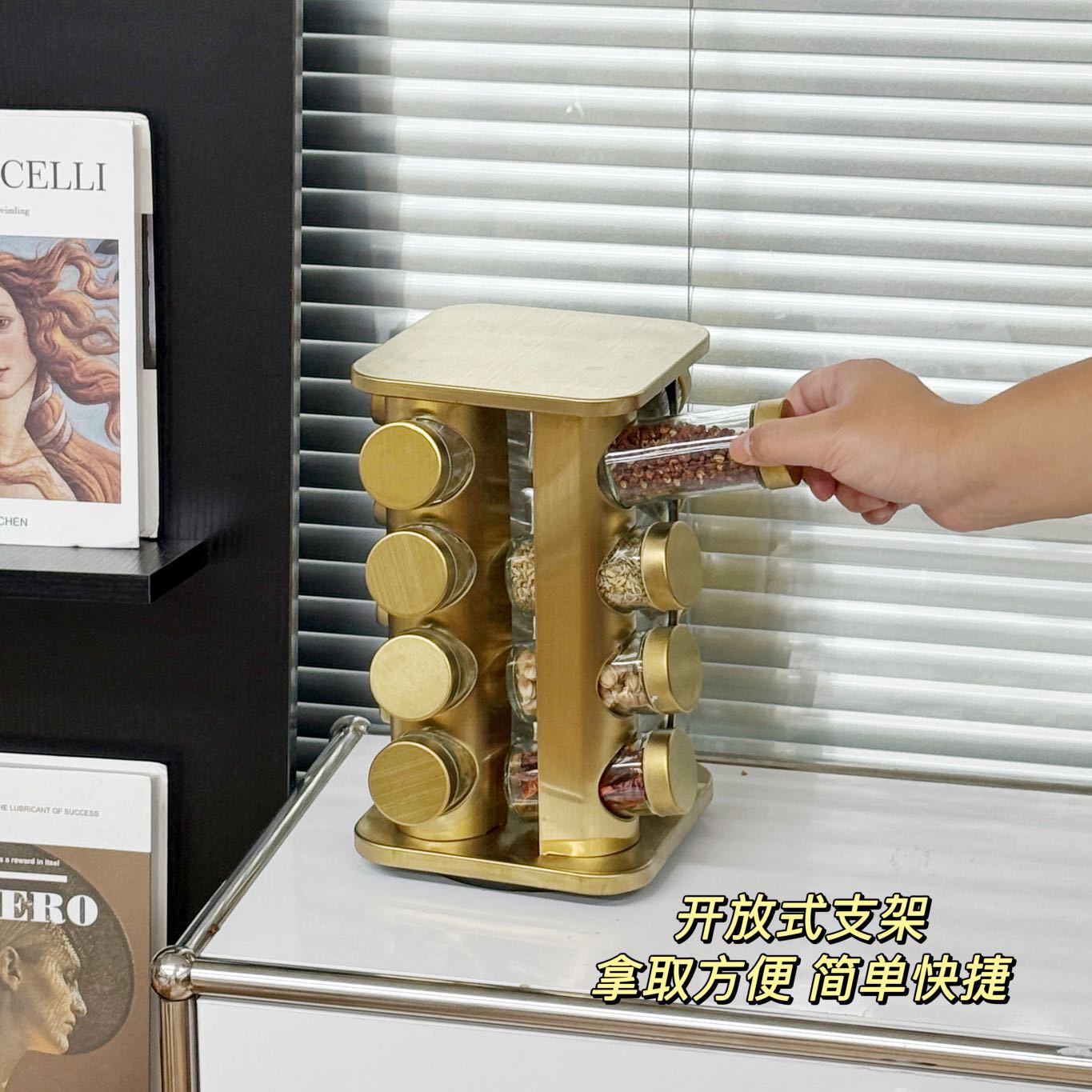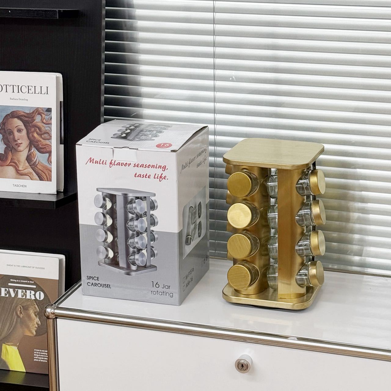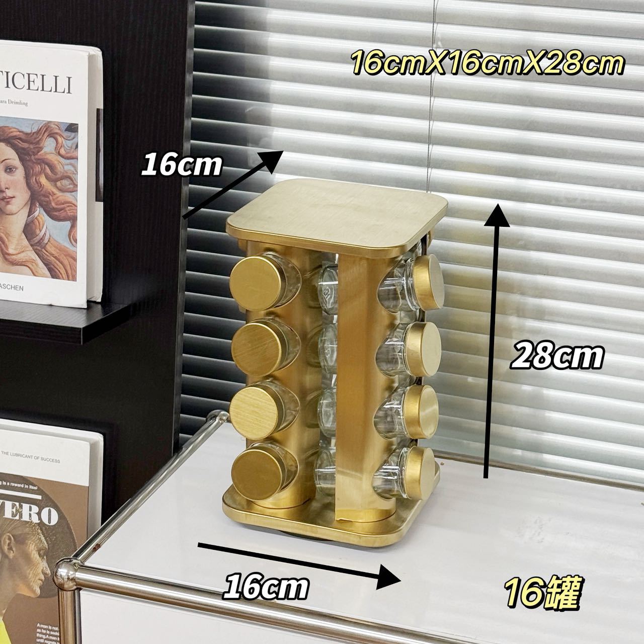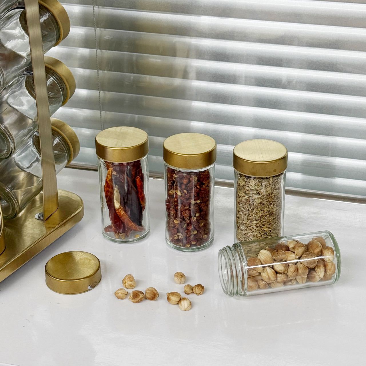 La cocina de almacenamiento del rey frito frito frasco de especias directamente dejar que la cocina abierta cuelgue 16 frascos de vidrio giratorio gran frasco de especias