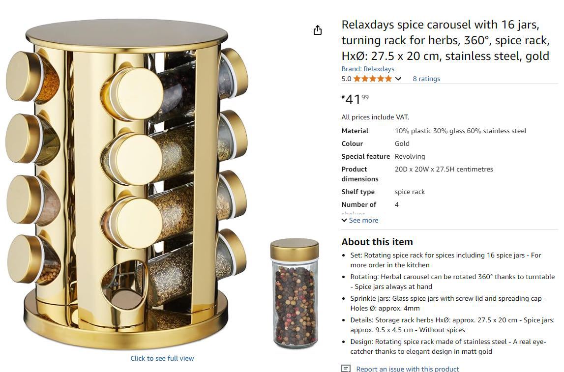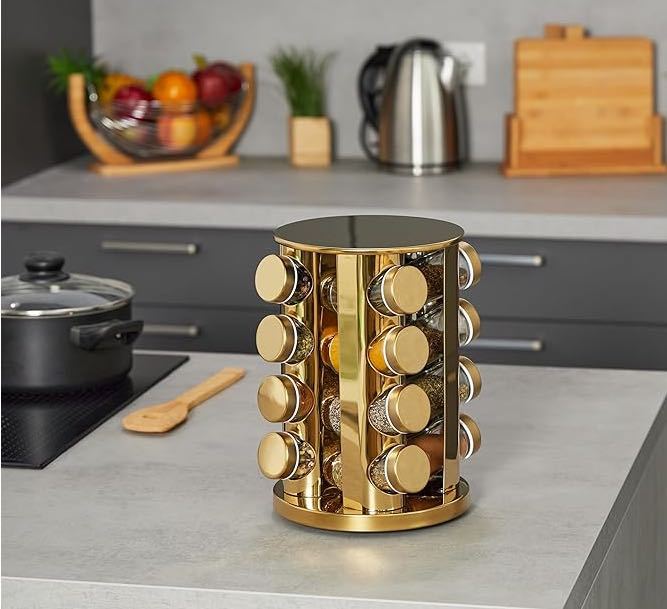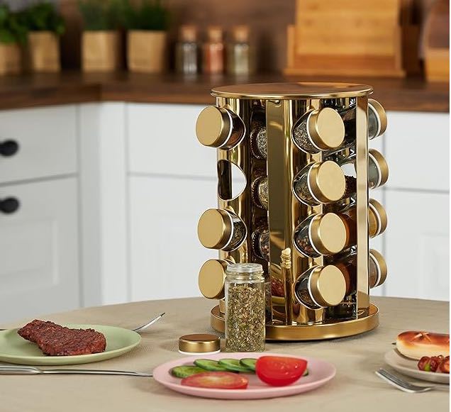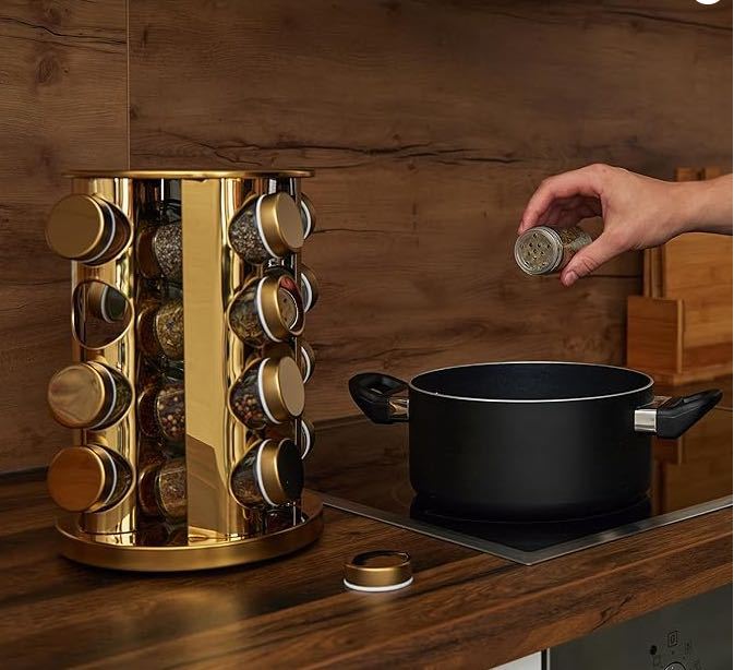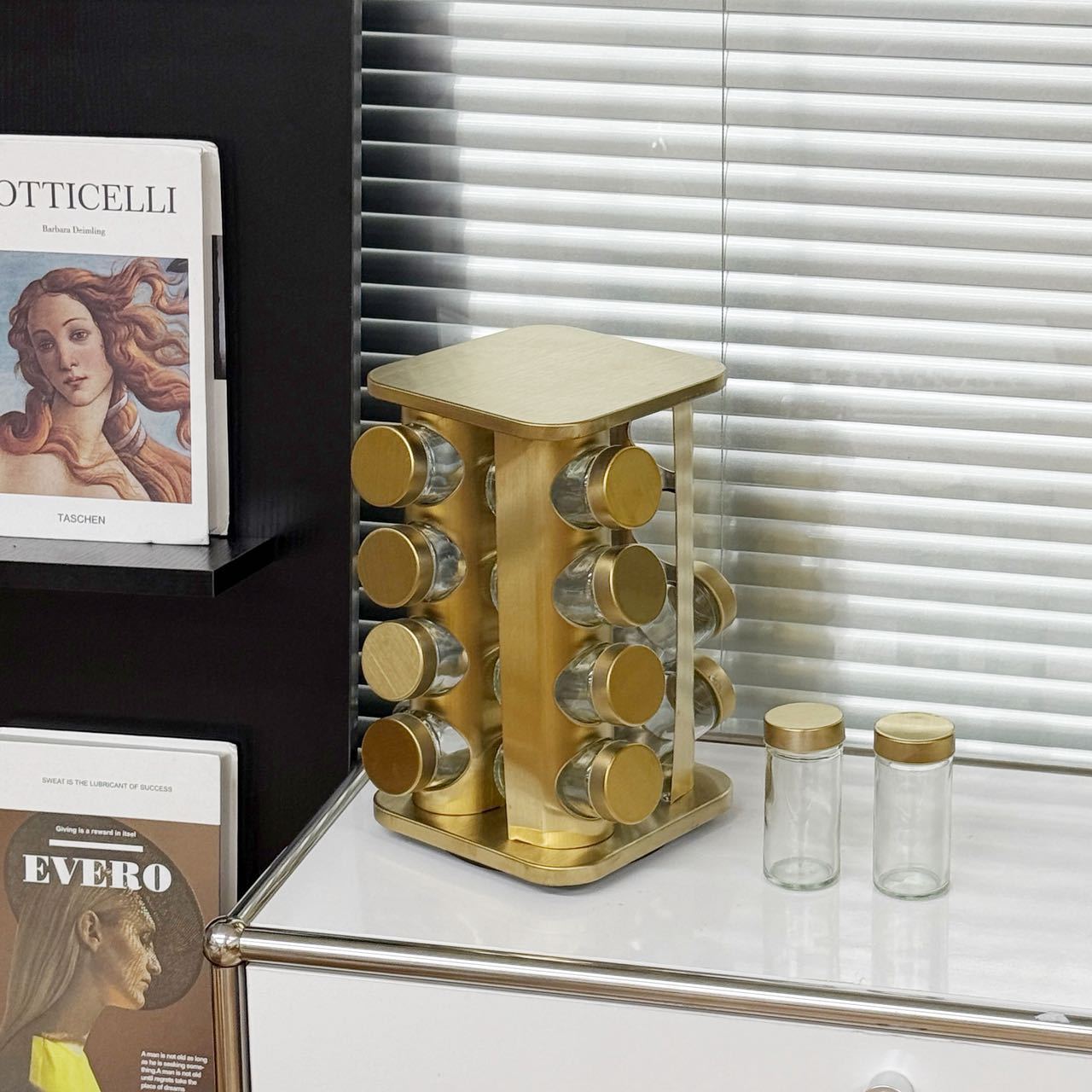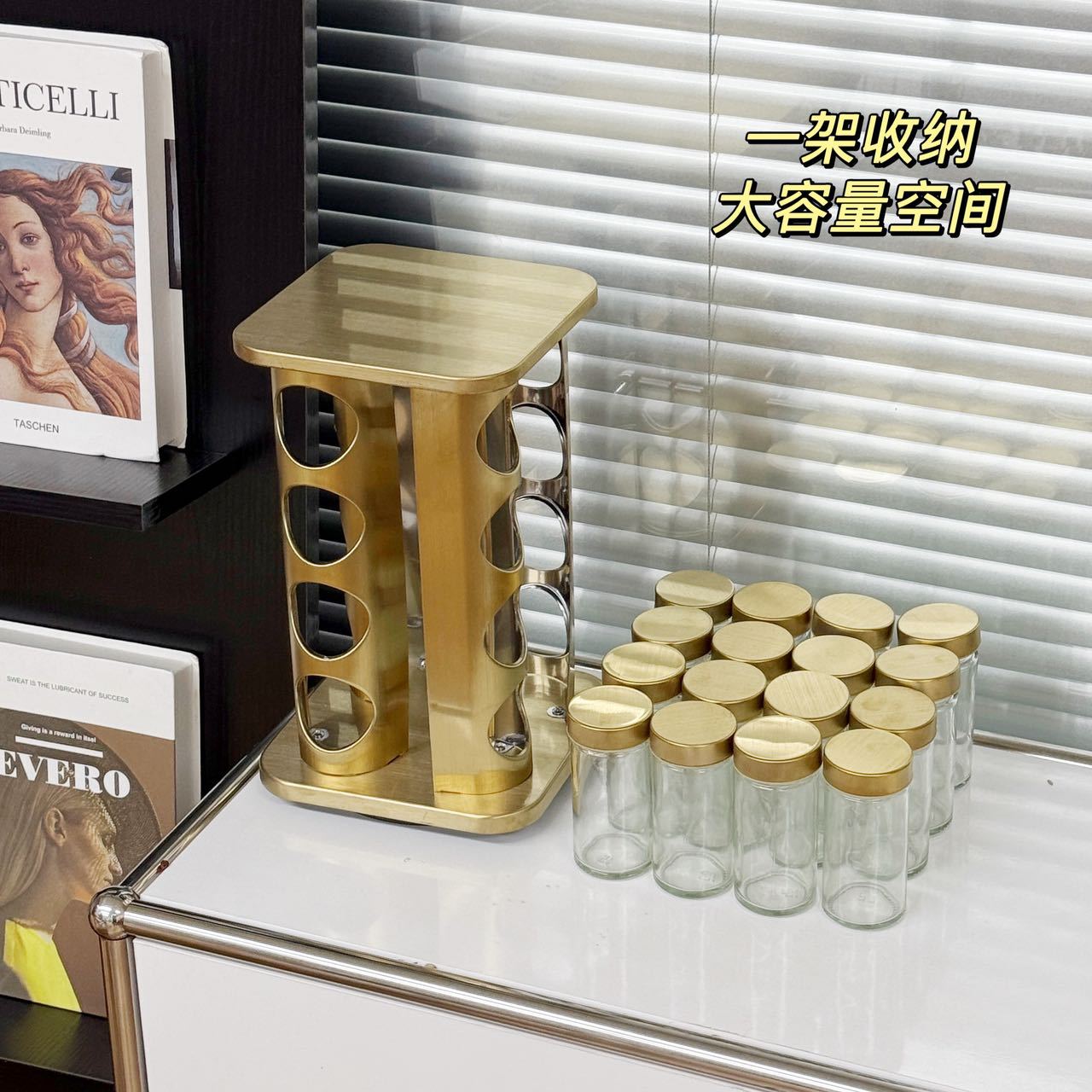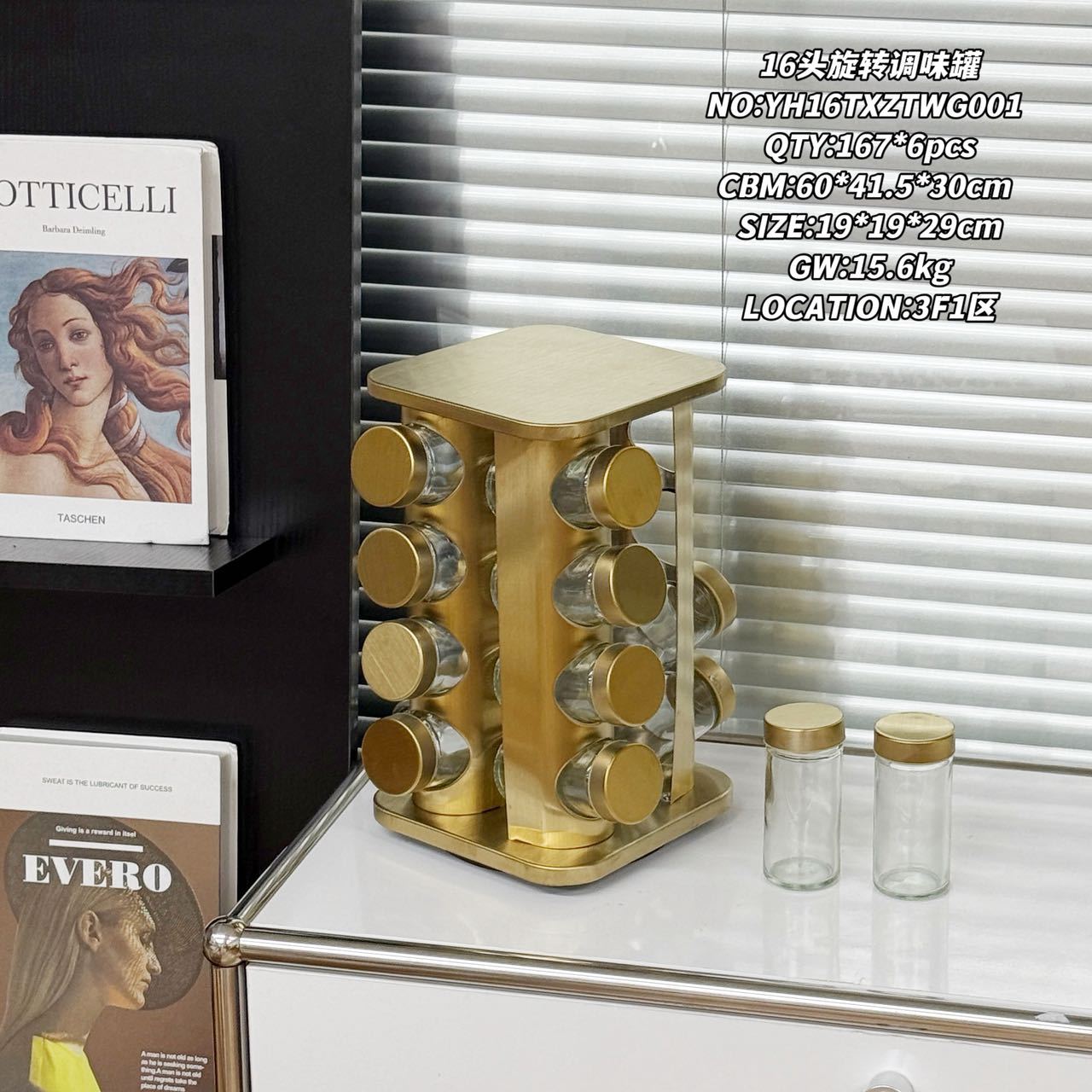 La cocina de almacenamiento del rey frito frito frasco de especias directamente dejar que la cocina abierta cuelgue 16 frascos de vidrio giratorio gran frasco de especias