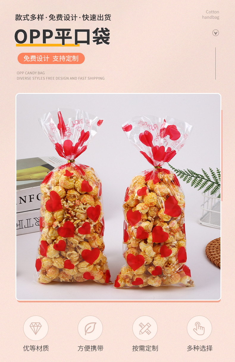 Bolsillo plano OPP para el día de San Valentín transfronterizo bolsas de impresión de dulces bolsas de embalaje galletas horneadas bolsas de vidrio plástico