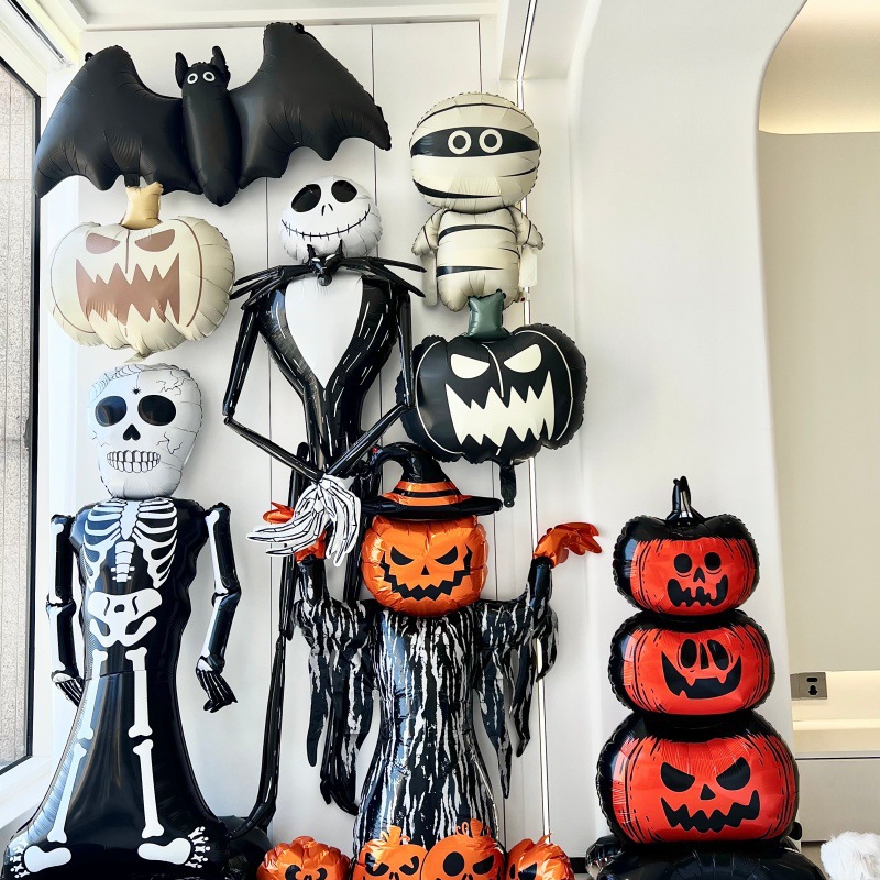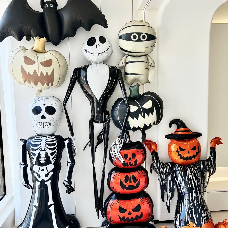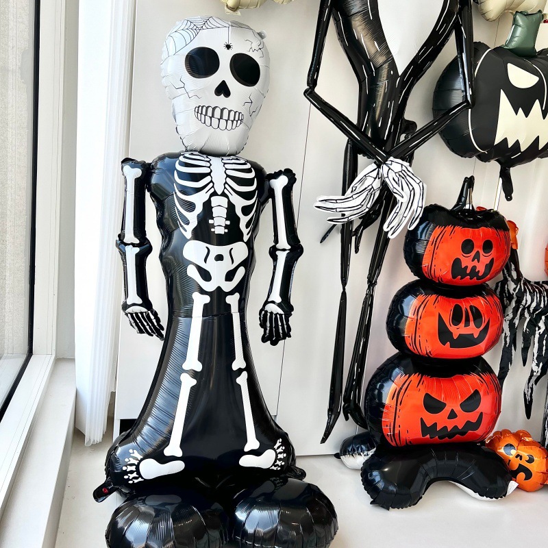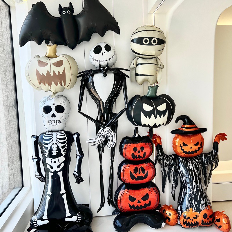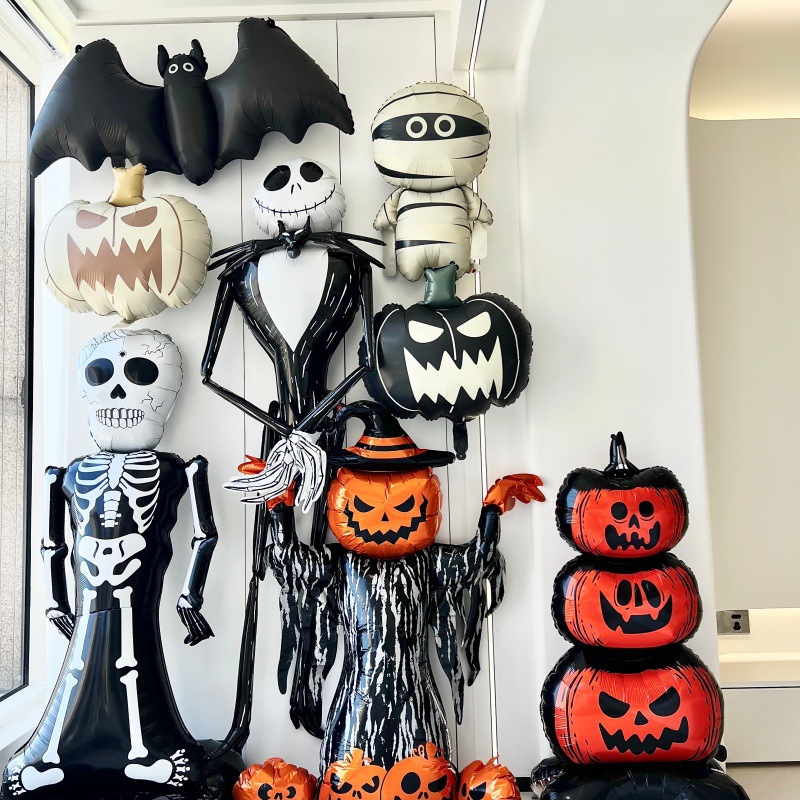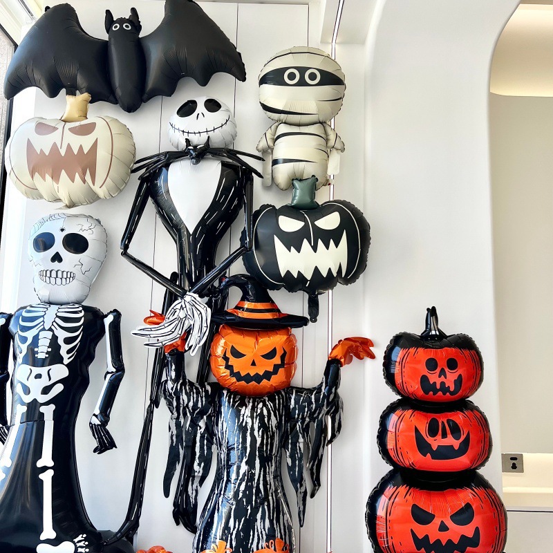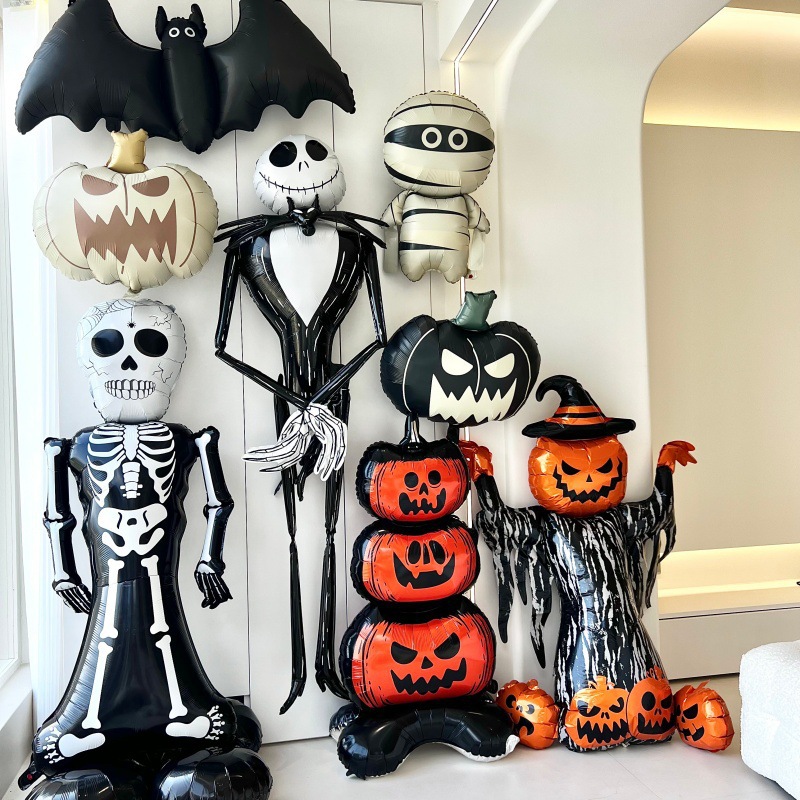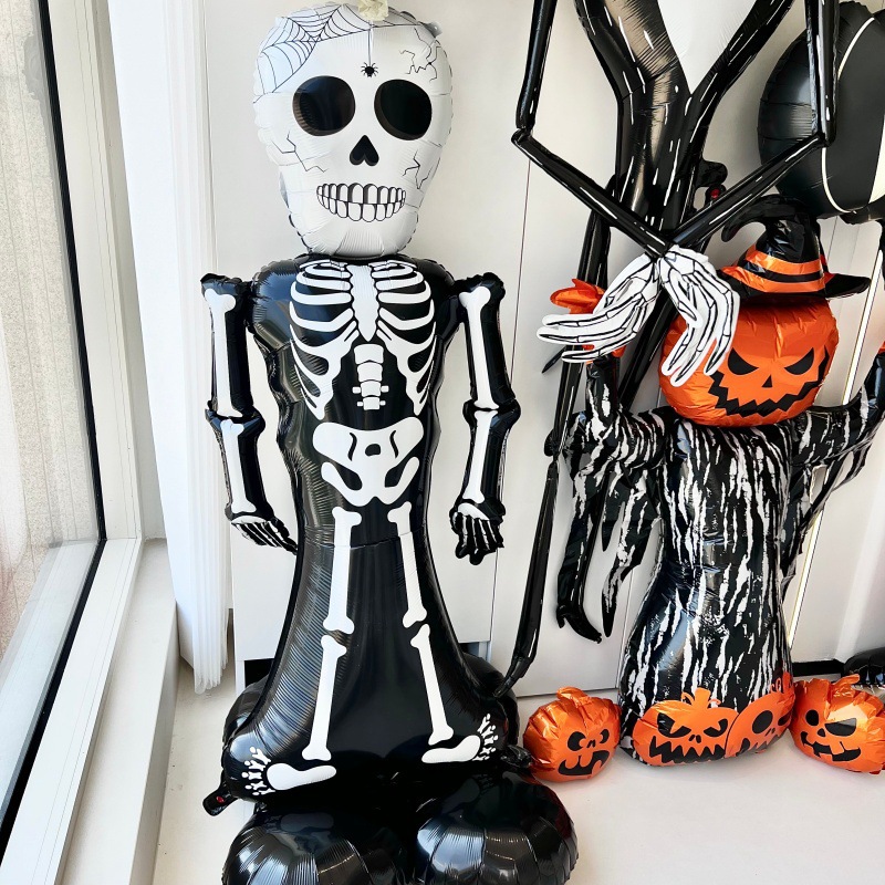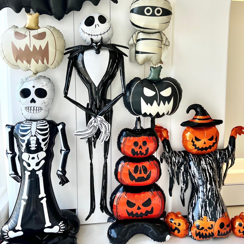 Atmósfera transfronteriza Halloween gigantesco de pie base de globo calabaza esqueleto demonio centro comercial bar café diseño
