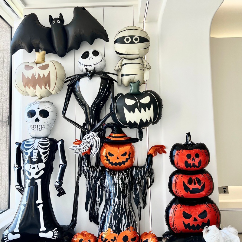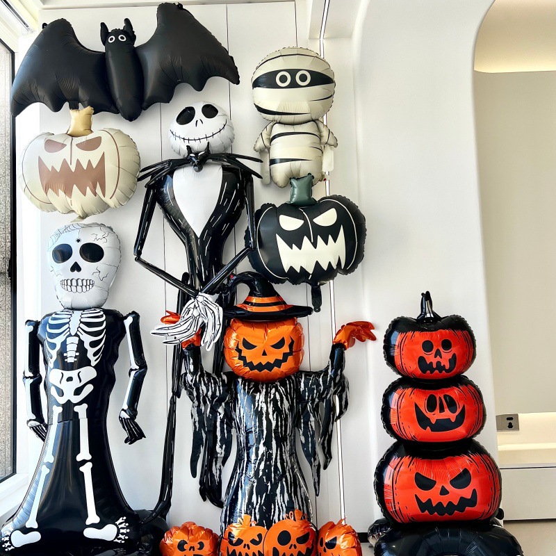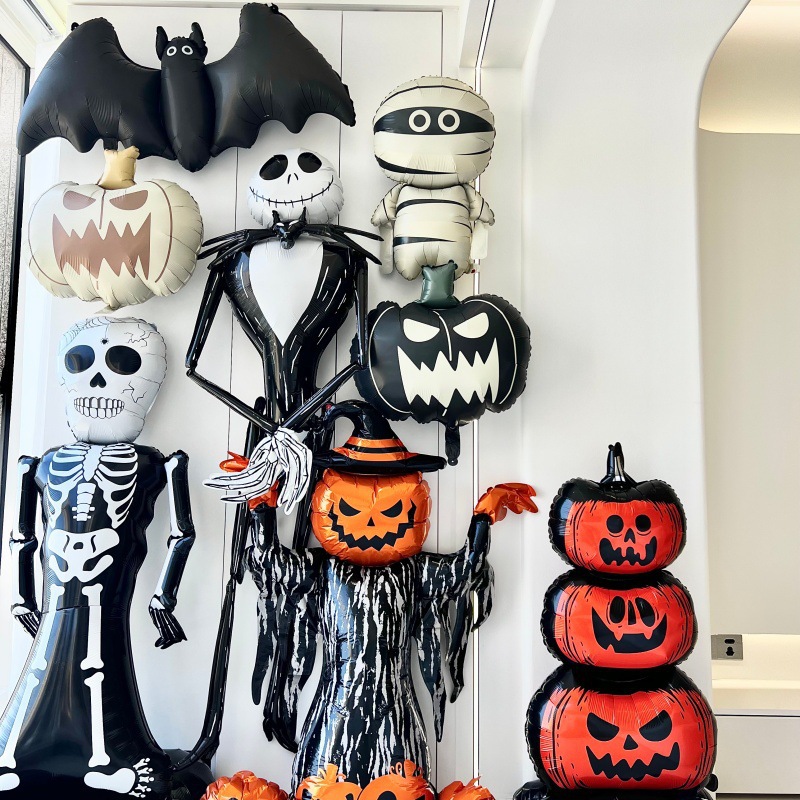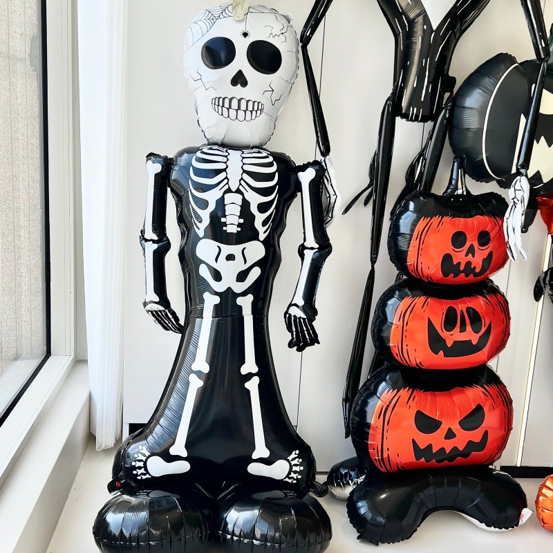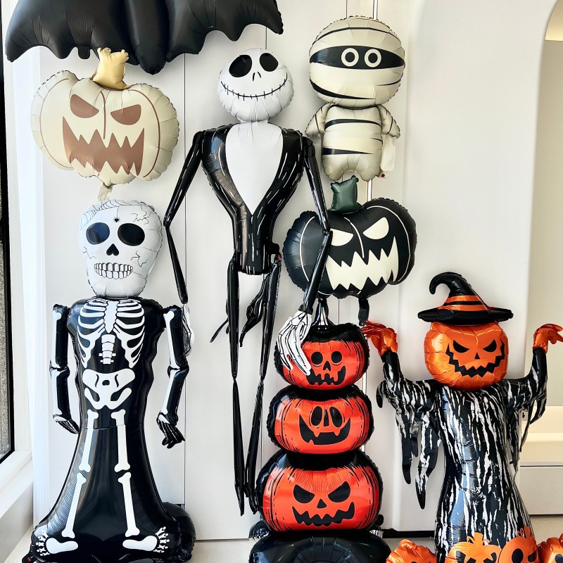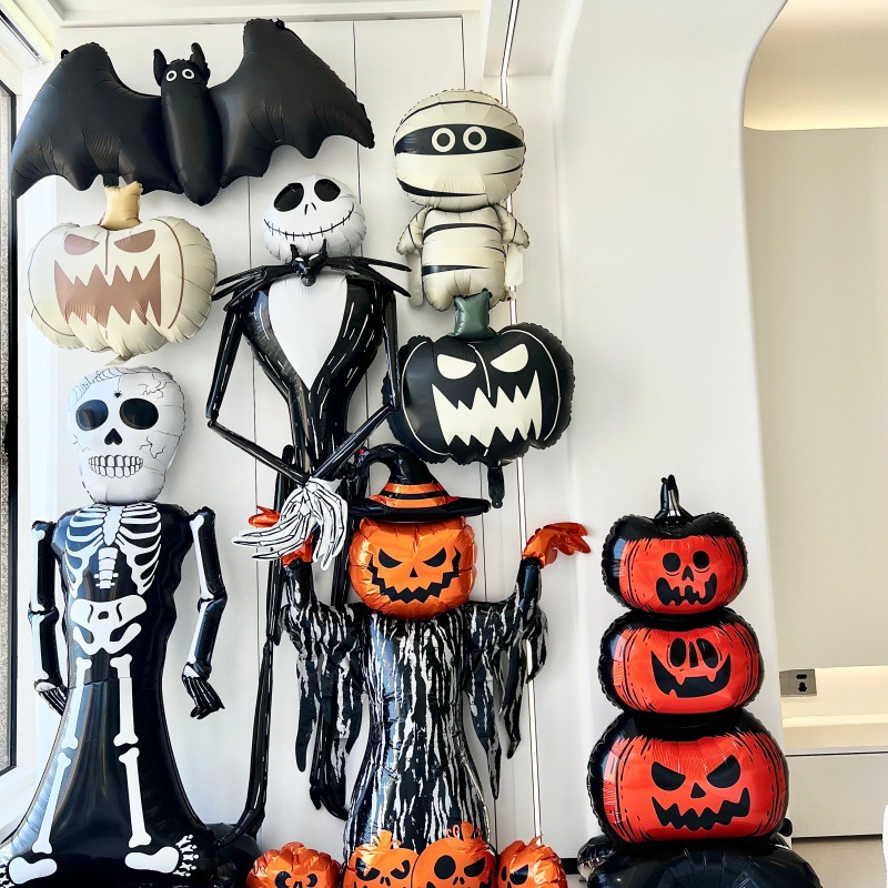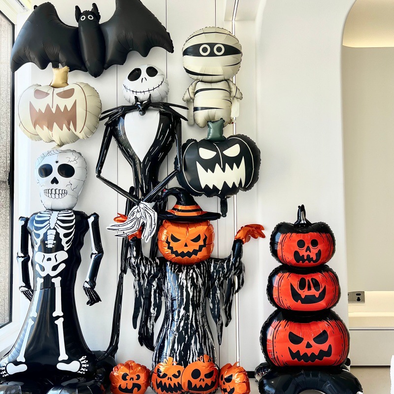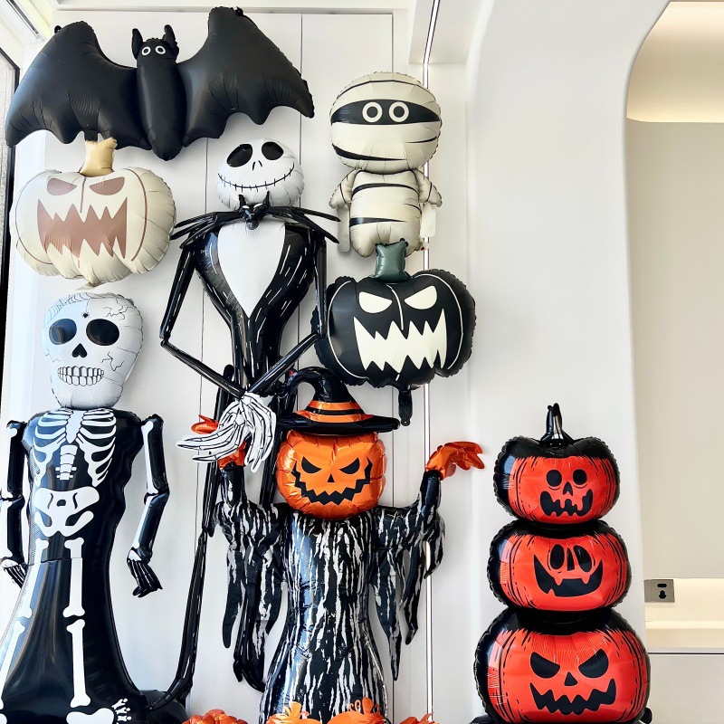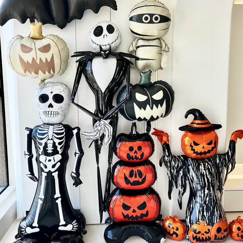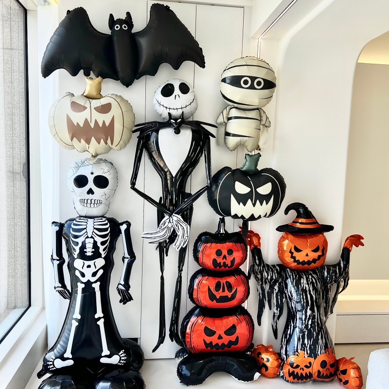 Atmósfera transfronteriza Halloween gigantesco de pie base de globo calabaza esqueleto demonio centro comercial bar café diseño