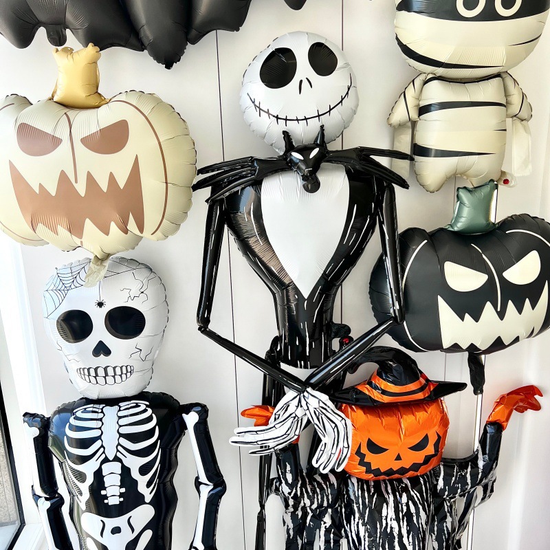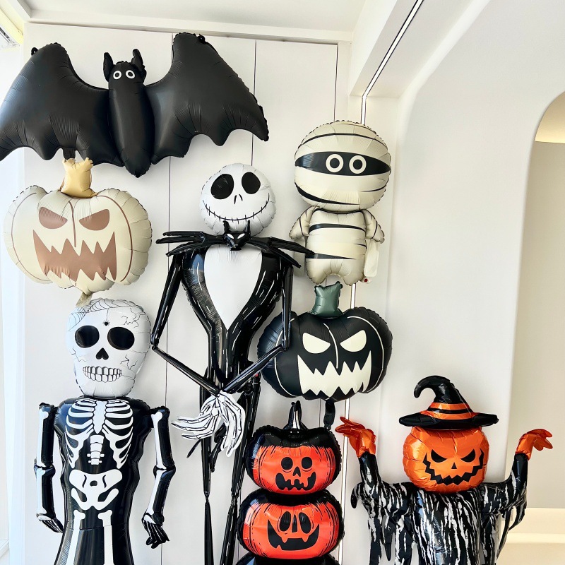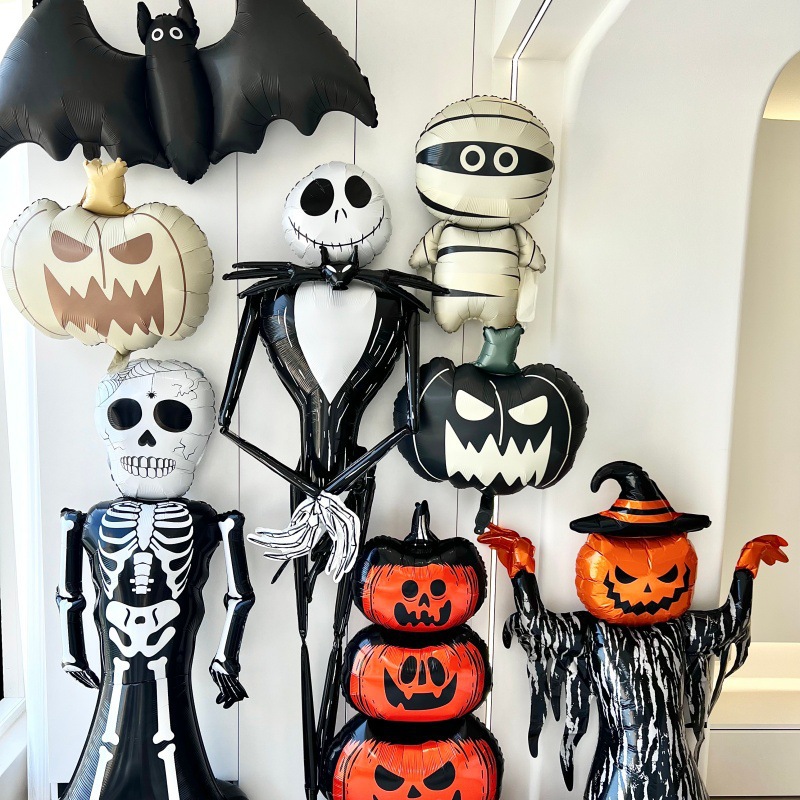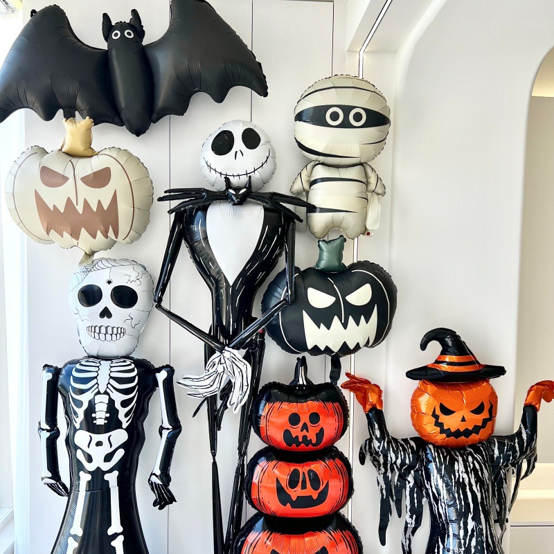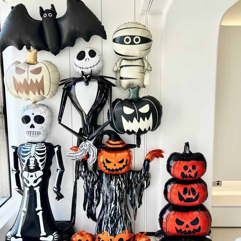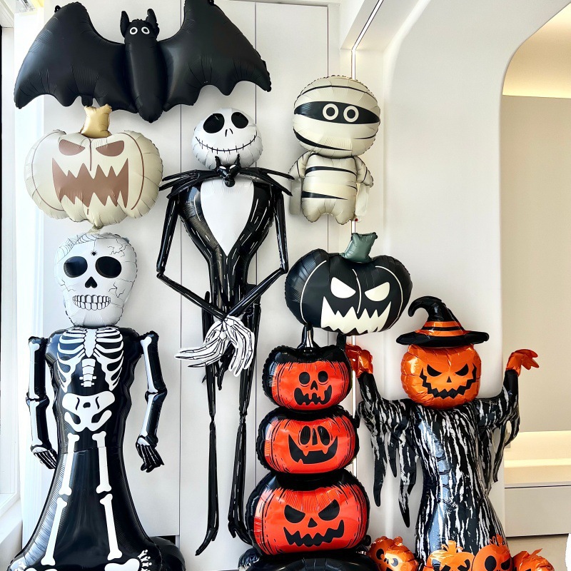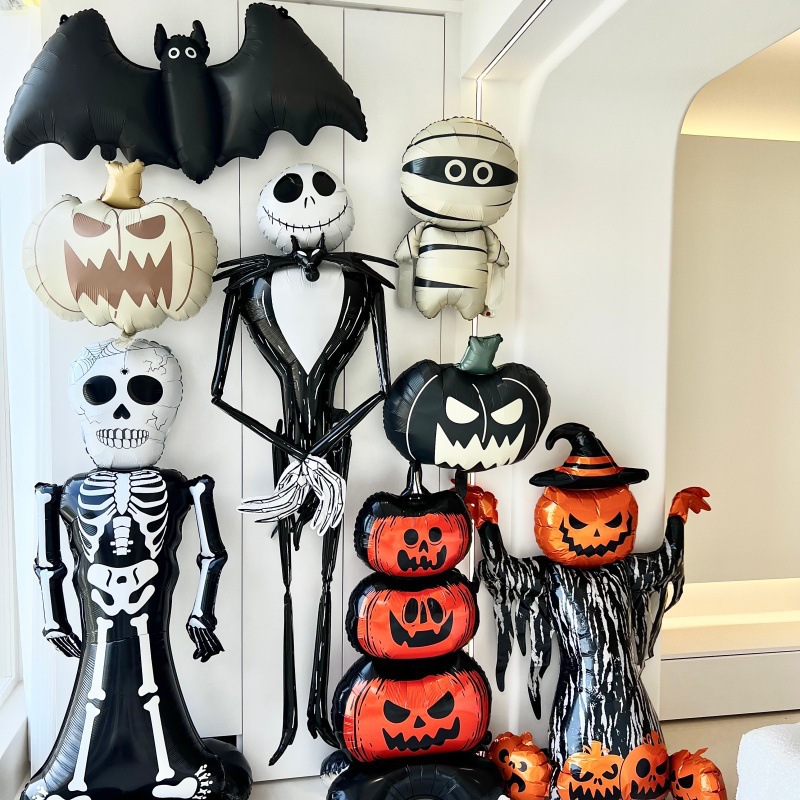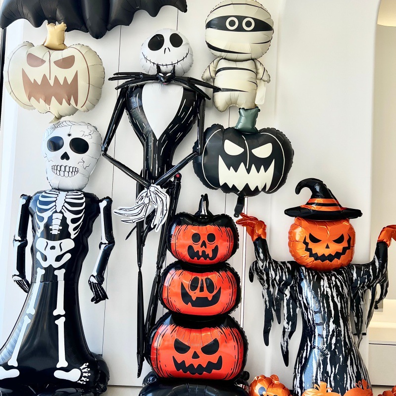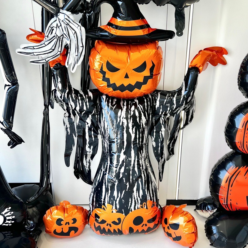 Atmósfera transfronteriza Halloween gigantesco de pie base de globo calabaza esqueleto demonio centro comercial bar café diseño