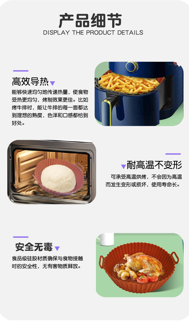 Explosión transfronteriza aire frito plato de horneado de silicio resistente a altas temperaturas plegable fácil de limpiar cojín de plato de horneado de silicio redondo