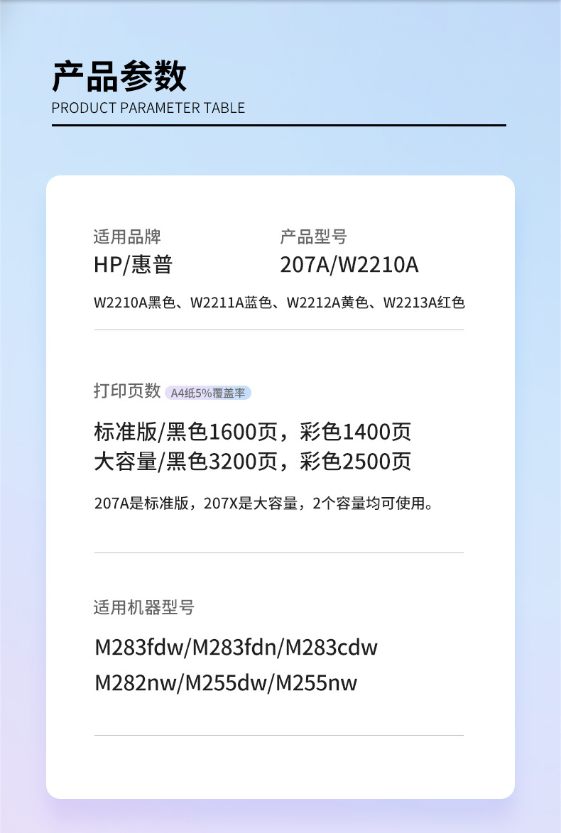 Cartucho de tóner compatible con HP M283fdw, hp207A, M282nw, M255dw, cartucho de tinta colorido 207X, W2210A/X