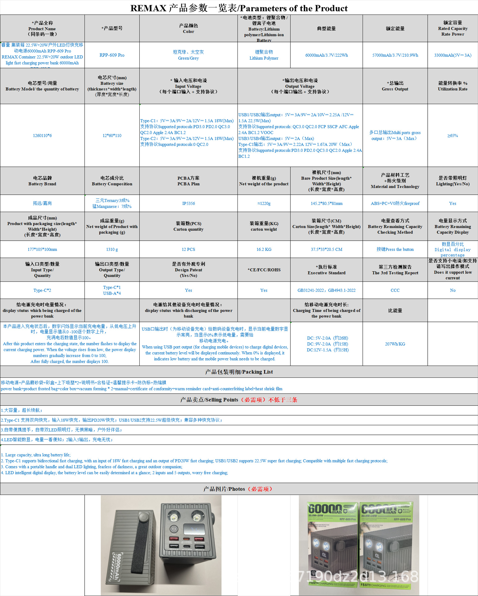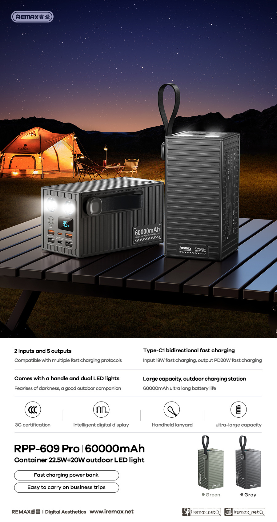Teror nuevo contenedor 22.5W + 20W lámpara LED al aire libre carga rápida fuente de alimentación móvil RPP-609PRO