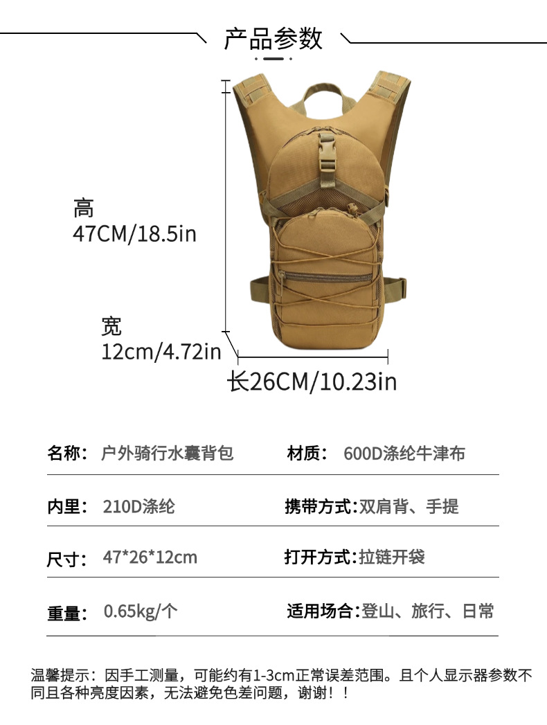 Cross-border Especial Táctico militar ventiladores camuflaje bolsa de agua multifuncional de gran capacidad multi-capa de equitación bolsa de agua mochila táctica bolsa