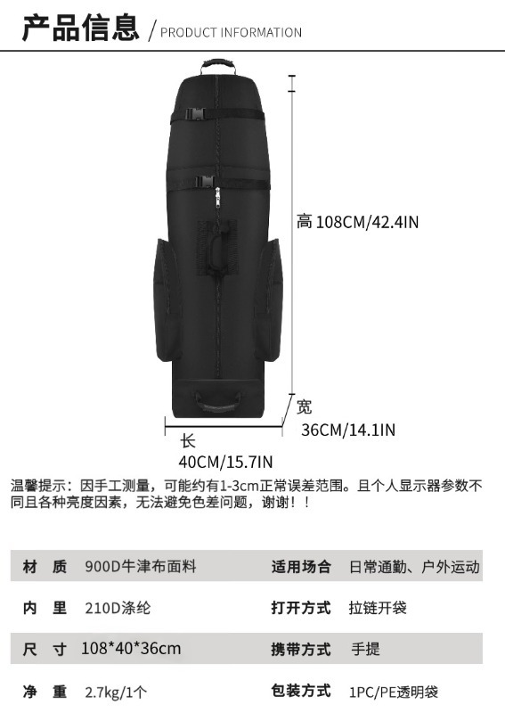 Deportes al aire libre bolsa de golf de alta tela resistente al desgarro elástico impermeable remolcador bolsa de pesca al aire libre