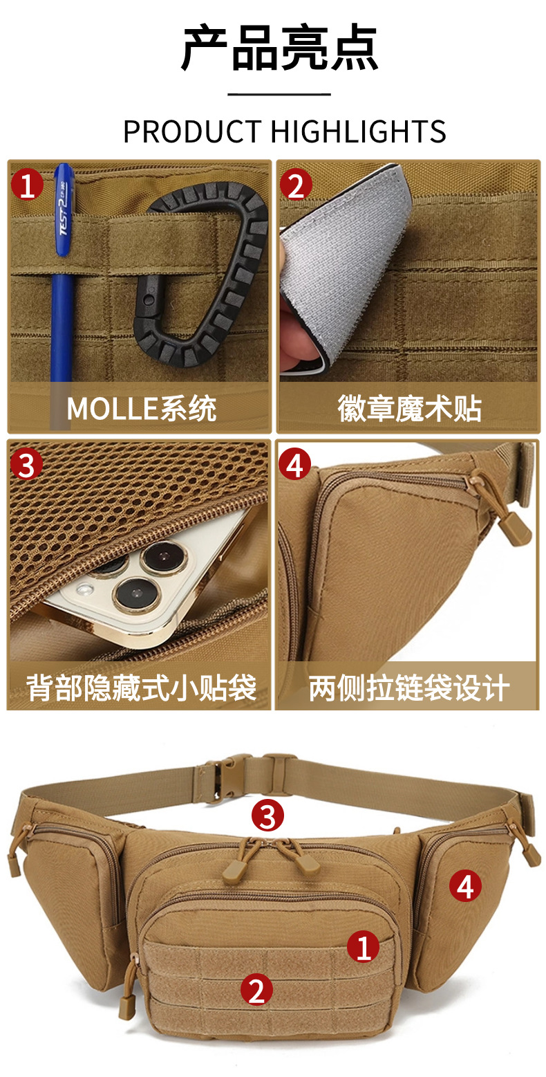 Amazon transfronteriza caliente al aire libre deportes impermeable cintura bolsa de pesca multifuncional pecho bolsa unisex camuflaje cintura bolsa