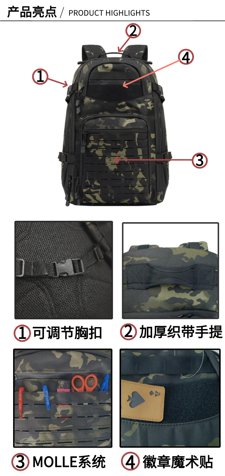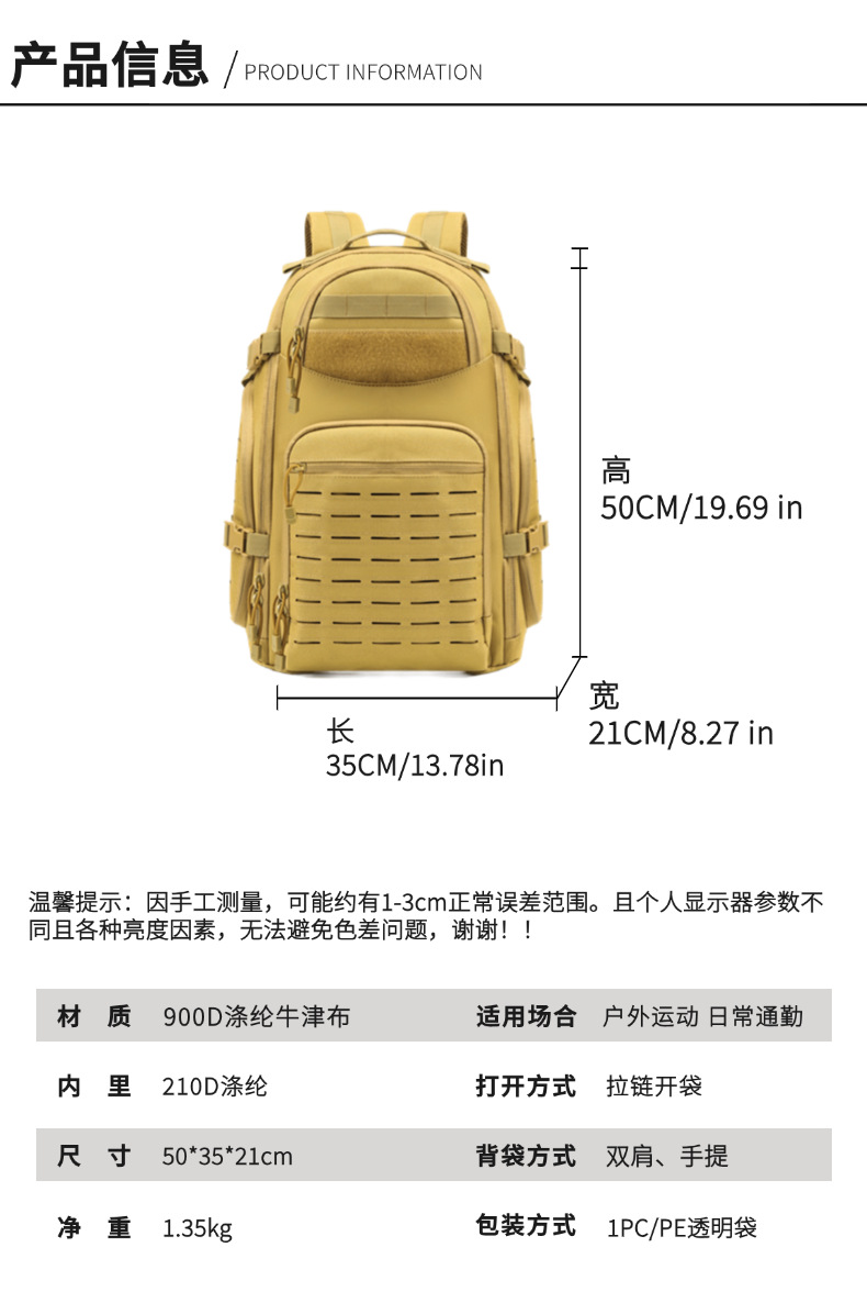 Deportes transfronterizos viajes al aire libre ocio huevo de dragón mochila de senderismo poliéster mochila táctica resistente al desgaste mochila de montañismo al aire libre