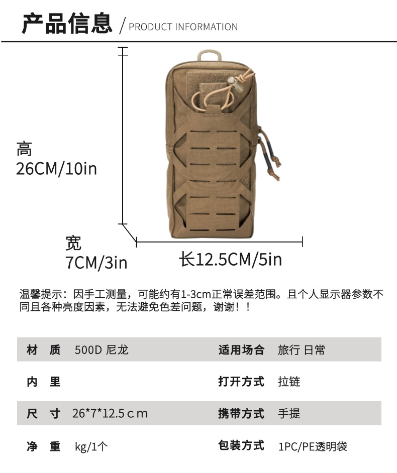 Nuevo producto Paquete de accesorios de almacenamiento de cuchillos de camping de campo personalizados, tácticas de montañismo, bolsa de almacenamiento de accesorios de riñonera EDC