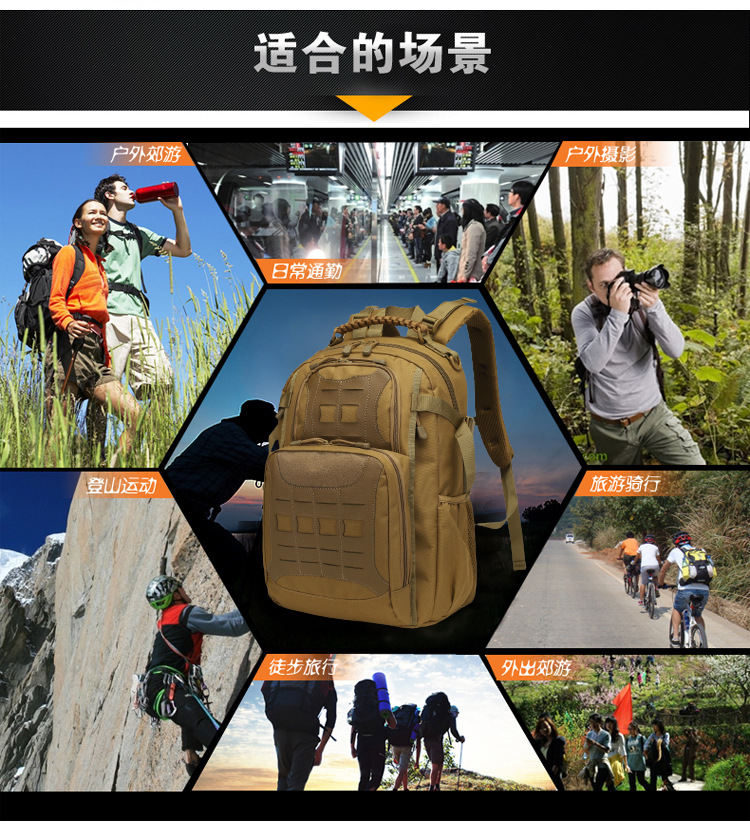 Mochila nueva personalizada, bolsa de montañismo, mochila multifuncional antisalpicaduras al aire libre, camuflaje, bolsa deportiva resistente al desgaste al por mayor