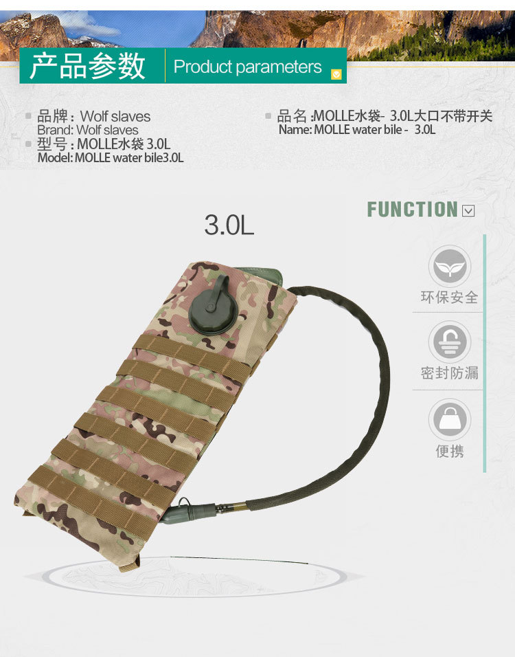 Bolsa de agua para ciclismo al aire libre con bolsa de agua para aliviar la sed de 3L, mochila de montañismo, deportes de senderismo, bolsa táctica de camuflaje, bolsa de agua