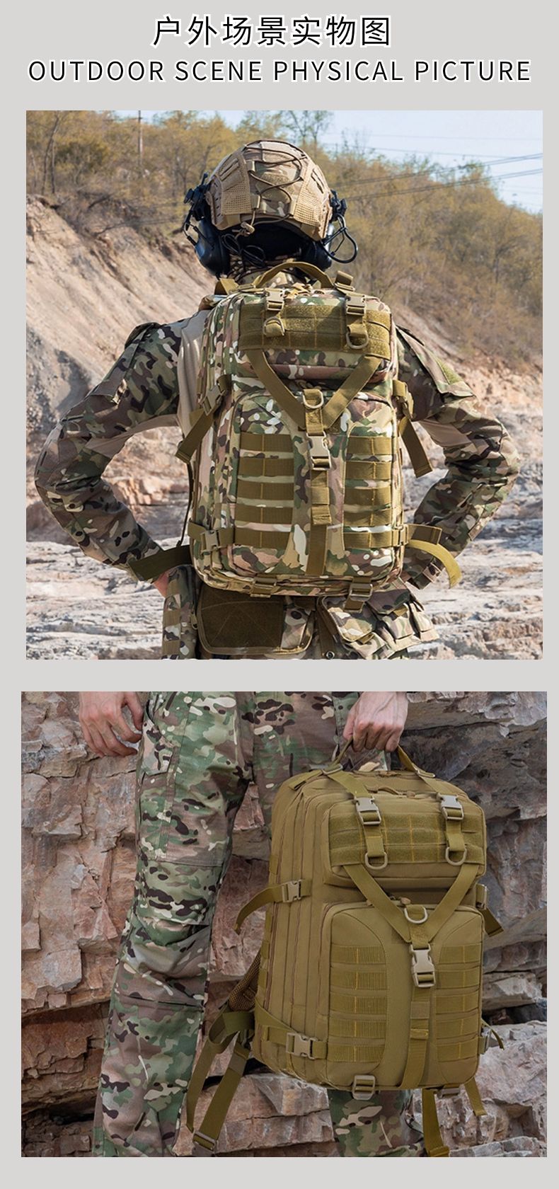 Mochila deportiva de camuflaje táctico Amazon, bolsa de Montañismo para senderismo al aire libre, mochila táctica multifuncional para acampar de gran capacidad