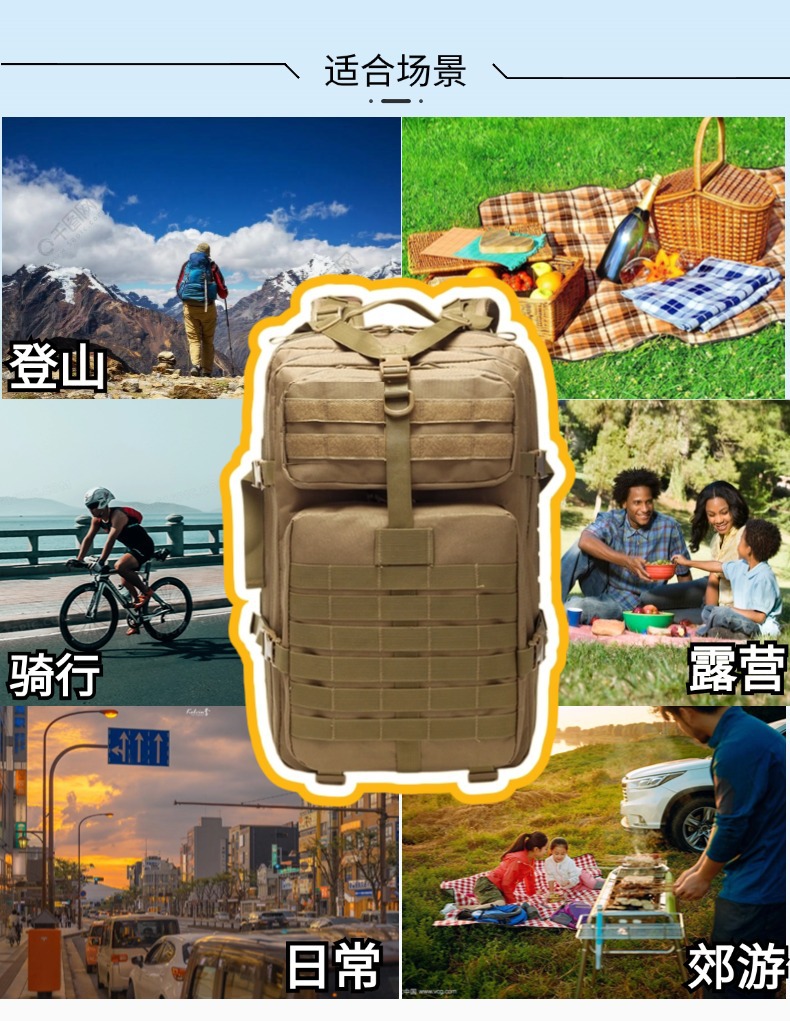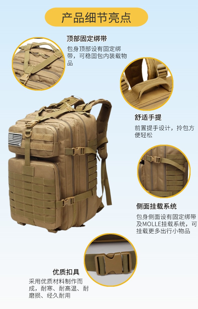 Deportes al aire libre mochila senderismo equipo de almacenamiento ventiladores militares camuflaje material resistente al desgarro multifuncional táctico 3p mochila