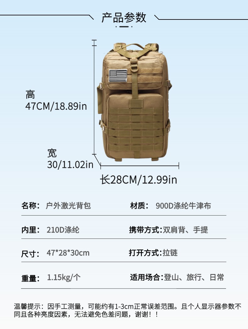 | Colores | Púrpura,Caqui,Negro,Rojo,Patrón imprudente negro,Gris,Verde militar,Selva digital,ACU |