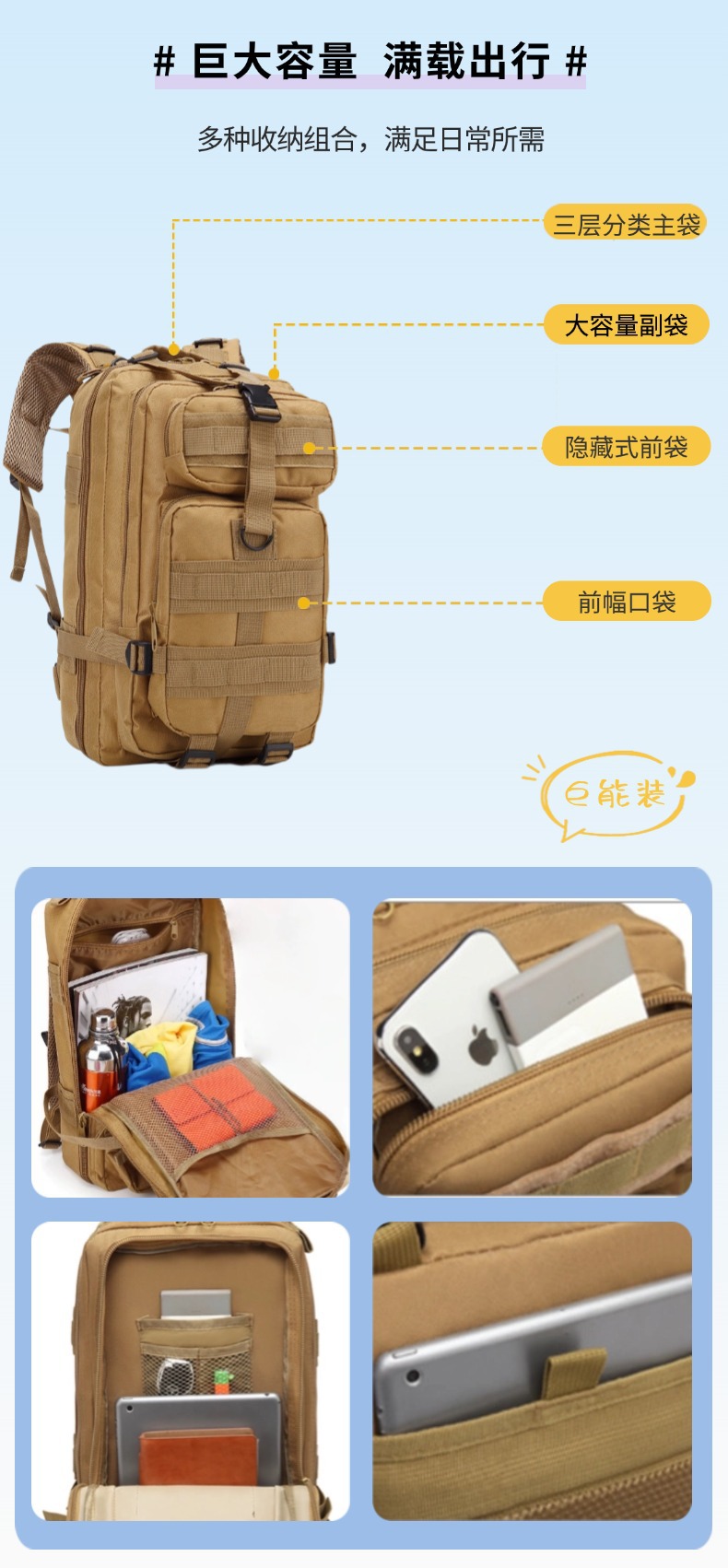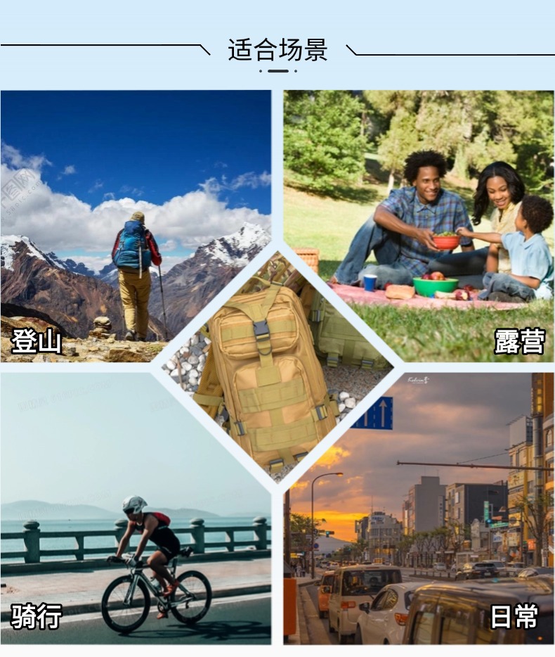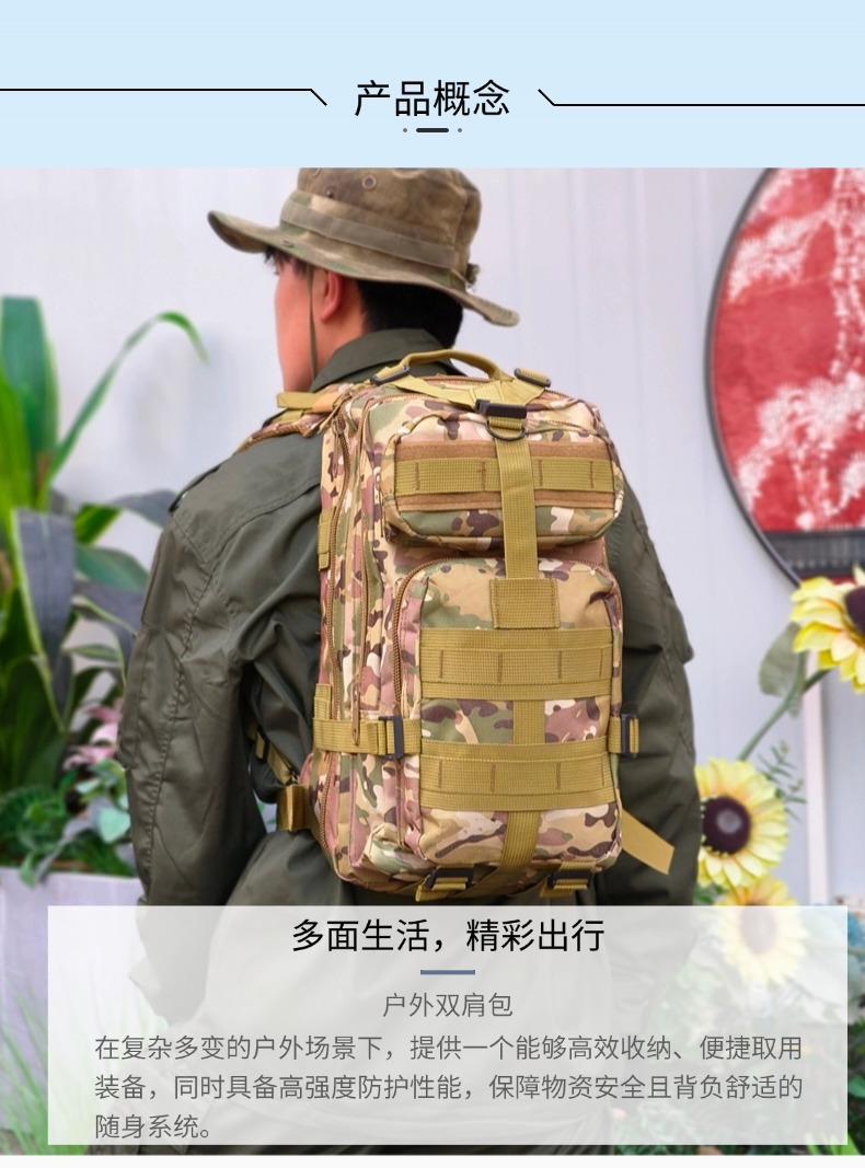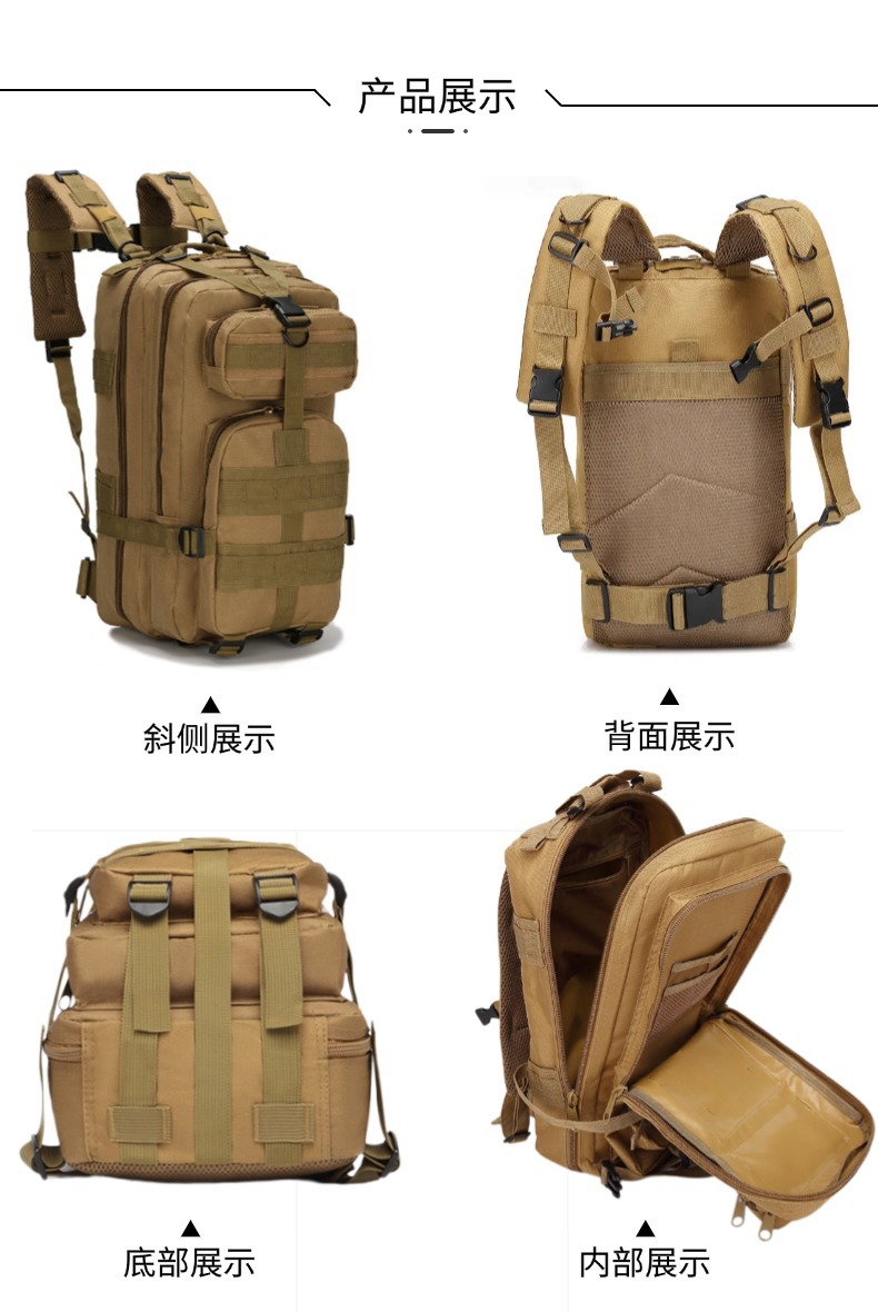 Bolsa táctica de Montañismo al aire libre, equipo de entrenamiento, mochila de camping, tela Oxford 600D, resistente a desgarros, pequeña mochila de almacenamiento 3P
