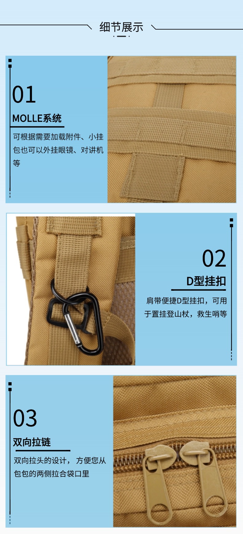 | Color | Rojo,Caqui,Negro,Verde Ejército,CP,ACU,Camuflaje de La Selva,Selva Digital,Desierto Digital,Camuflaje Sansha,Camuflaje hoja de arce,Patrón de pitón negro,Patrón de pitón caqui,Camuflaje negro |