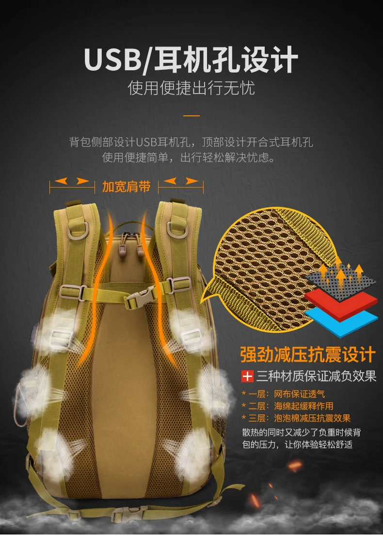 Venta caliente transfronteriza mochila táctica al aire libre camuflaje senderismo montañismo ciclismo mochila de gran capacidad nueva mochila de rana