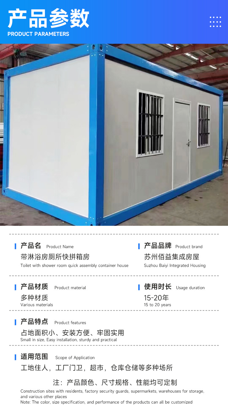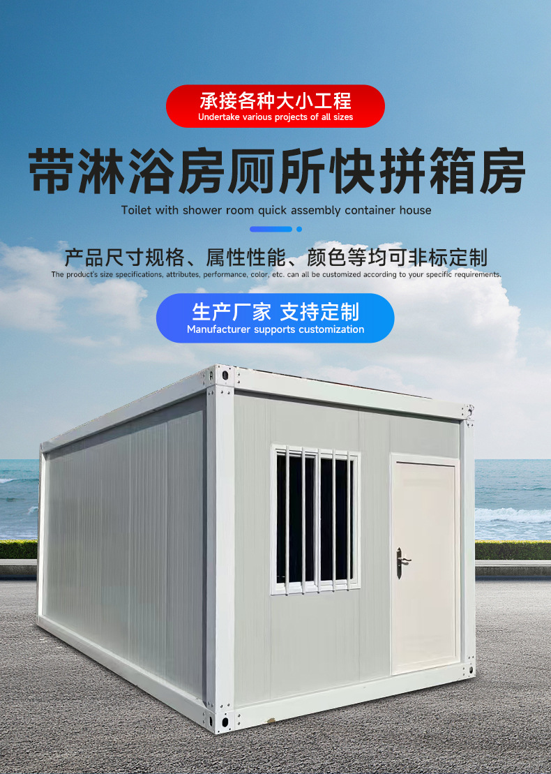 Exportación desmontable con ducha inodoro contenedor casa móvil dormitorio residencial sitio de construcción grueso fabricante de casa de contenedores