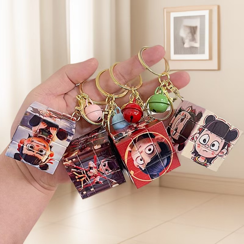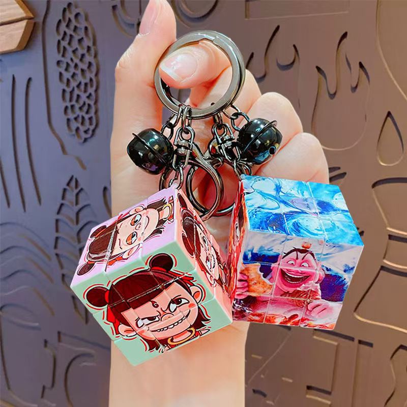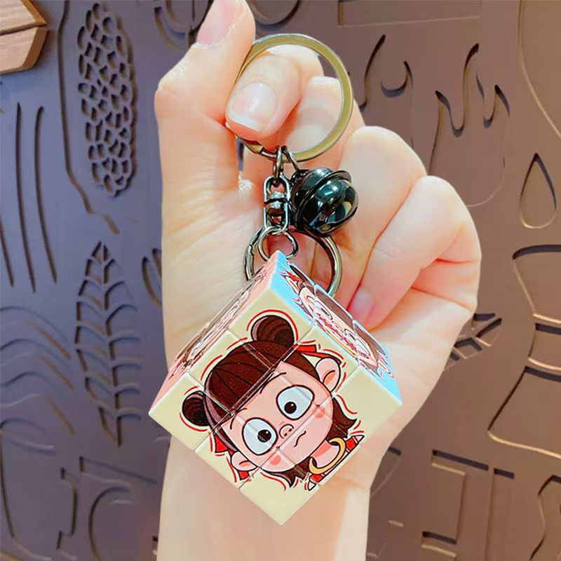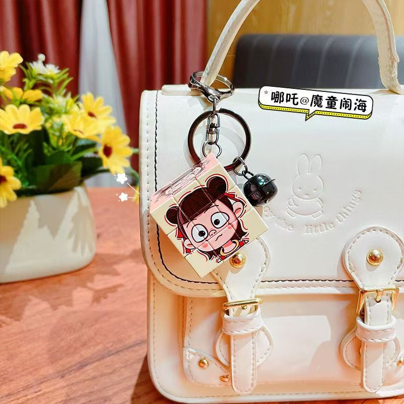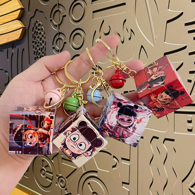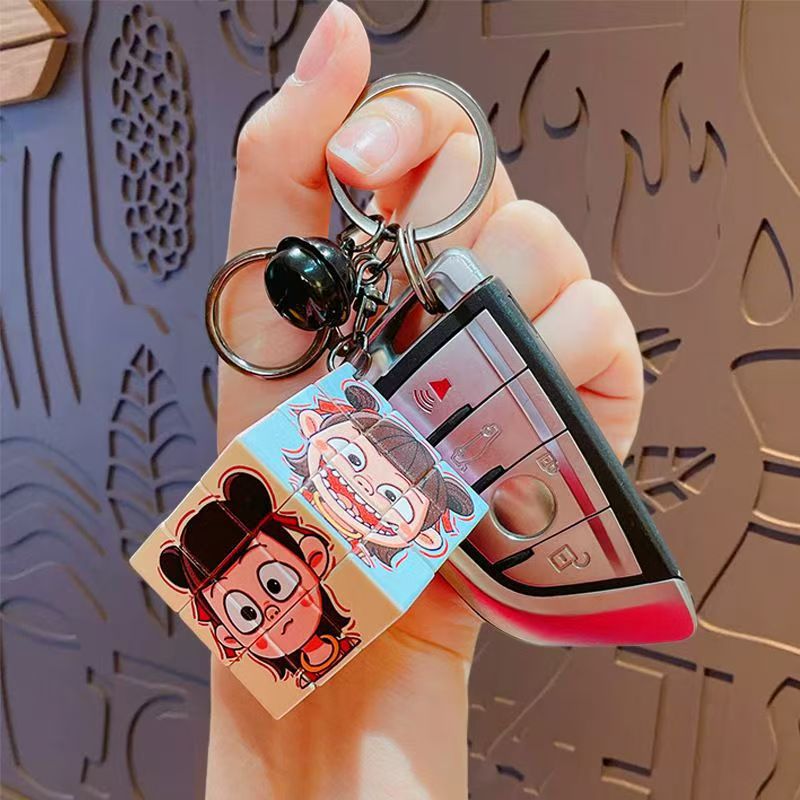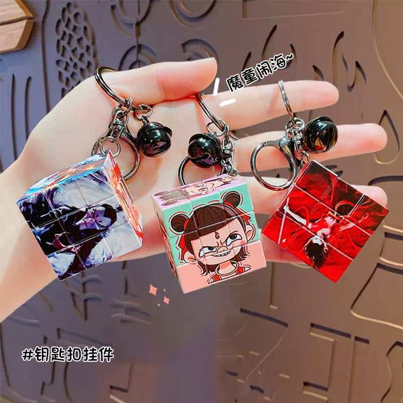 Nezha's Devil Boy Naohai Patrón de dibujos animados creativos Cubo de Rubik Llavero Bolsa Colgante Llavero Regalo pequeño al por mayor