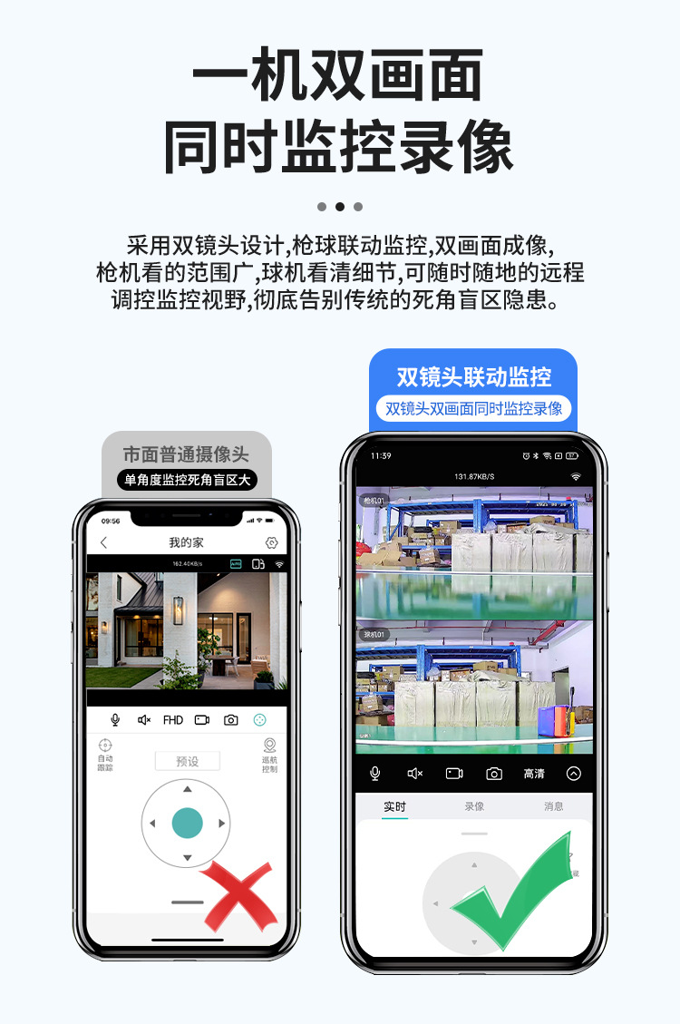 Monitor de cámara de doble pantalla 360 grados sin ángulo muerto teléfono móvil remoto hogar al aire libre HD visión nocturna inalámbrica