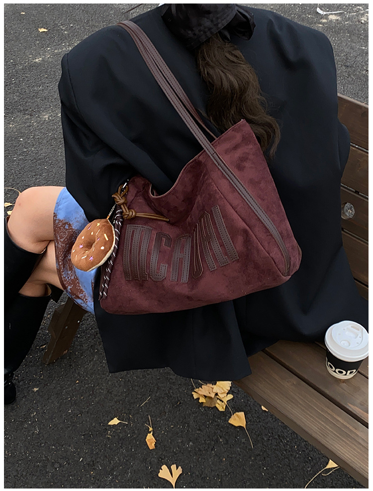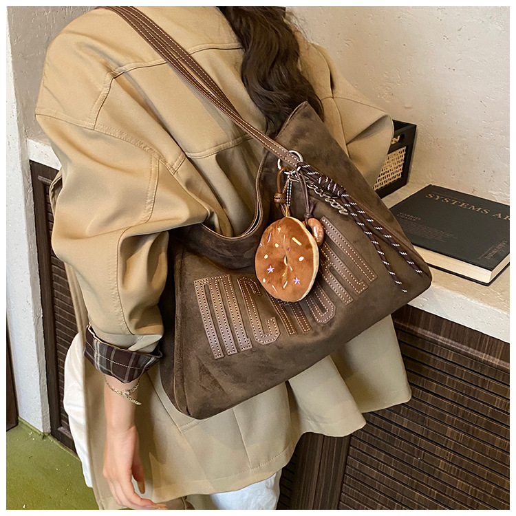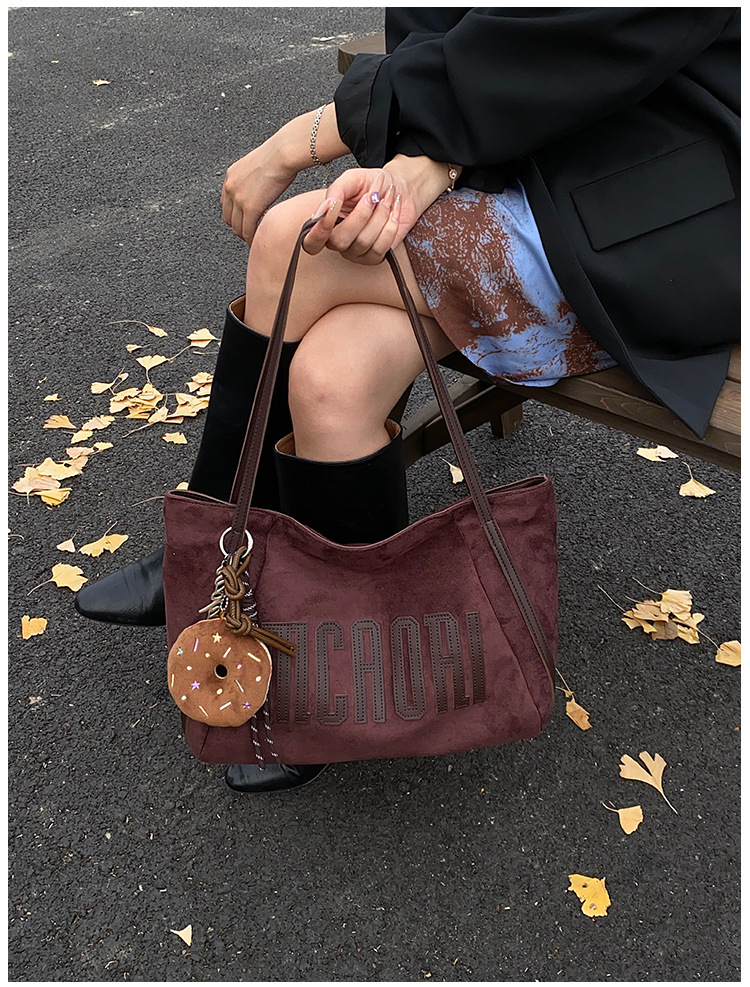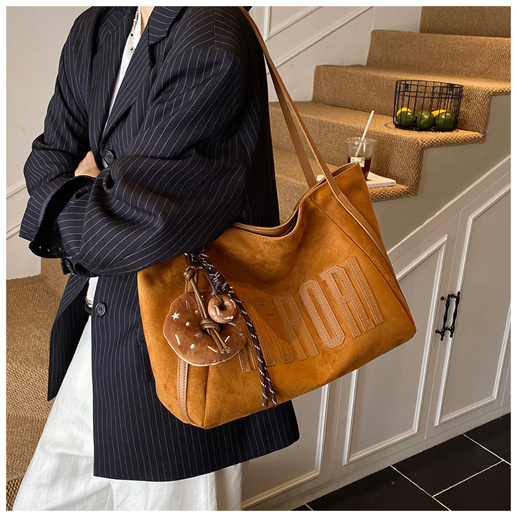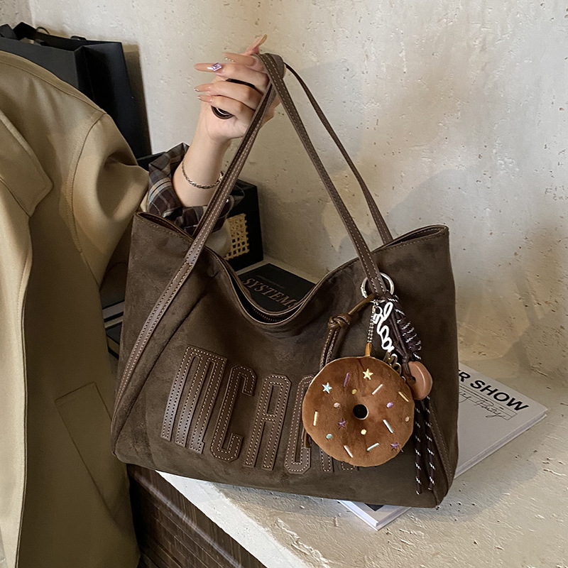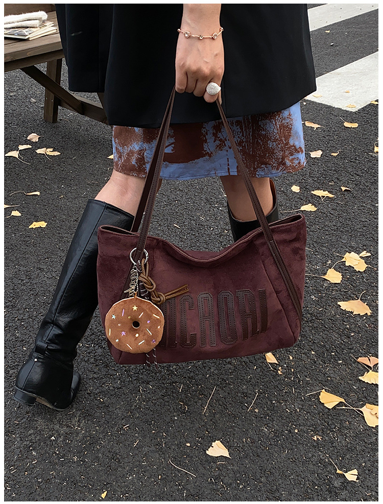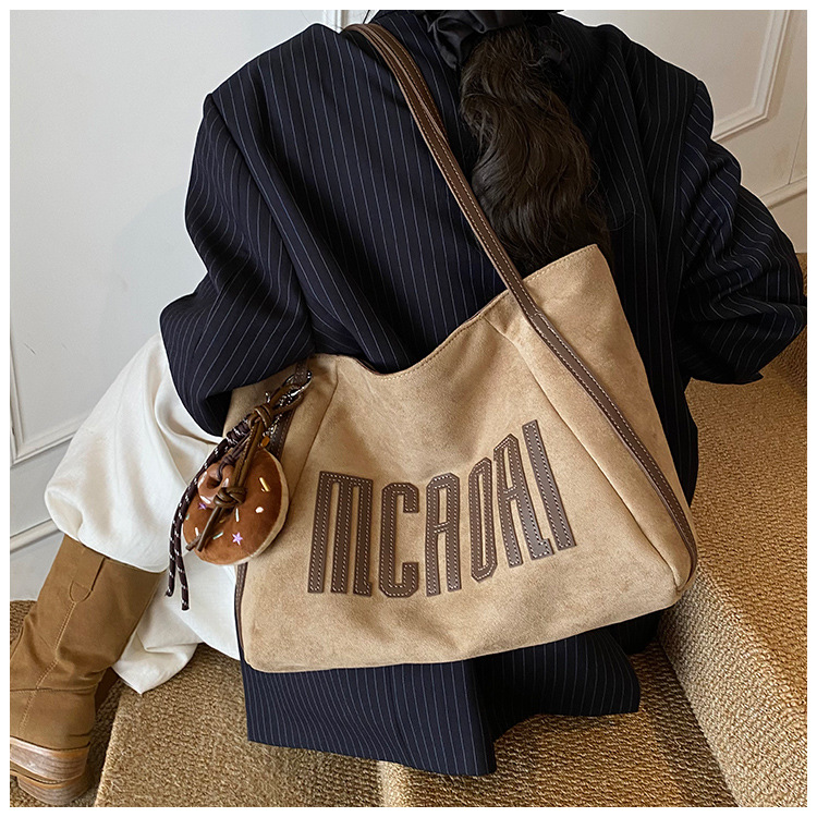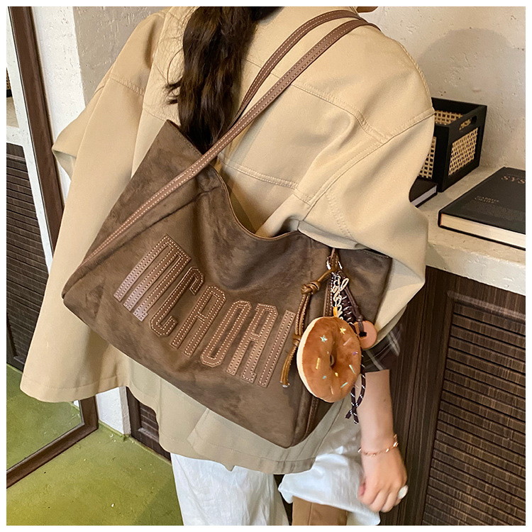 Casual de gran capacidad retro bolsas de seda de peluche mujeres 2025 nuevo estilo de transporte universal bolsas de hombro bolsas de estudiantes universitarios