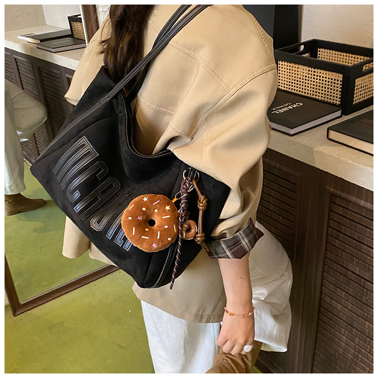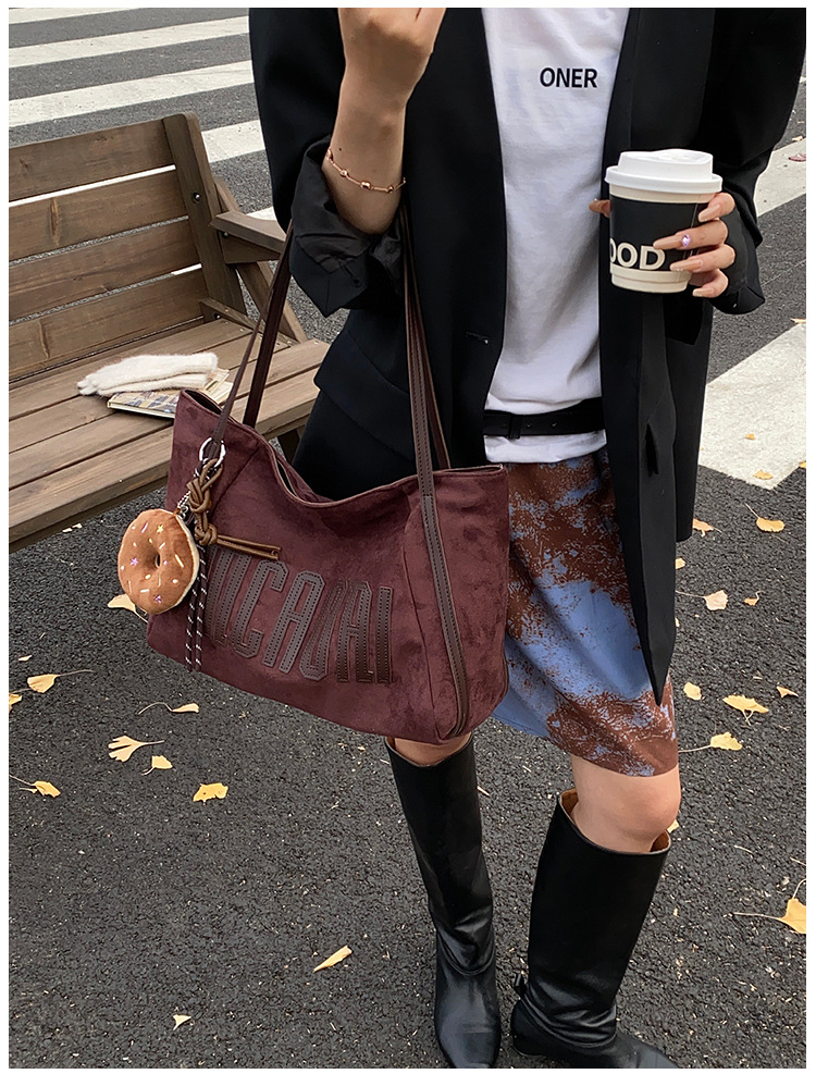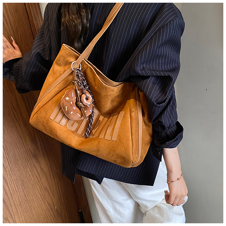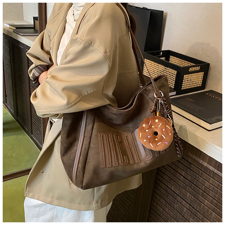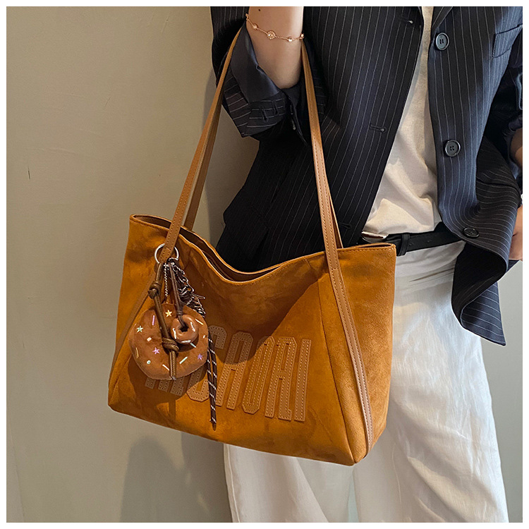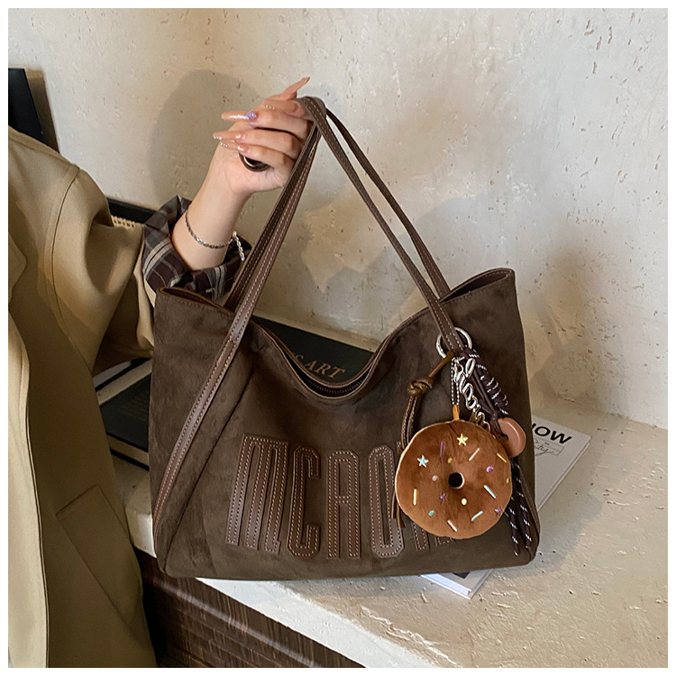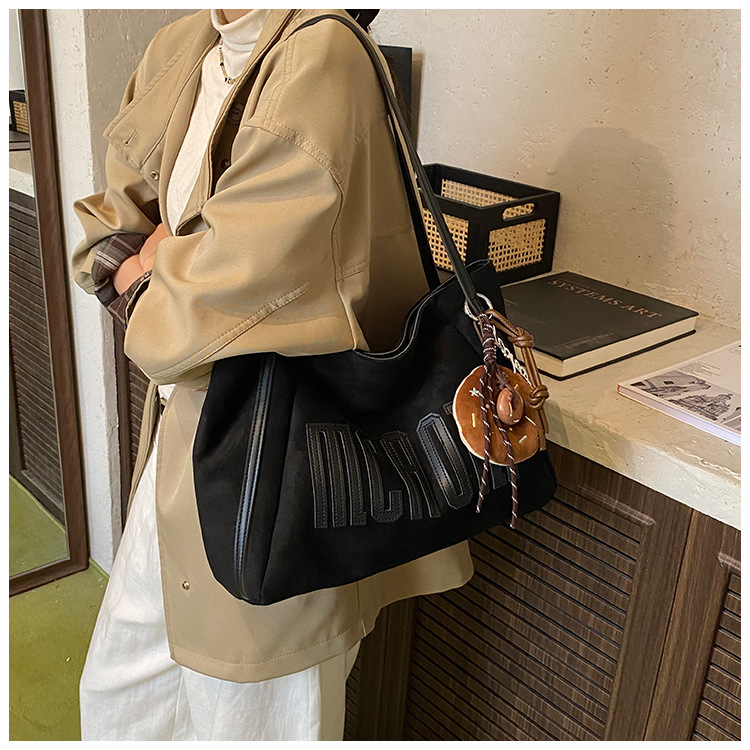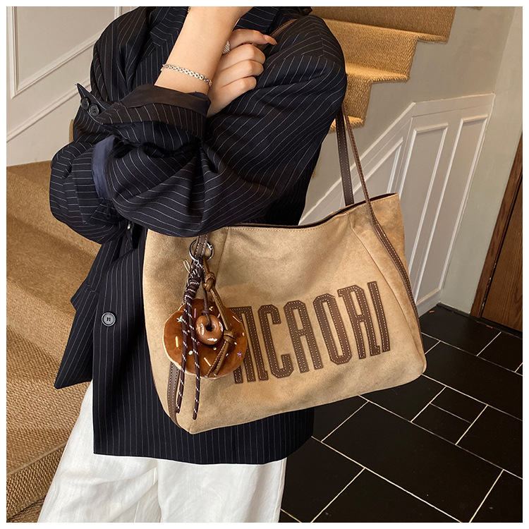 Casual de gran capacidad retro bolsas de seda de peluche mujeres 2025 nuevo estilo de transporte universal bolsas de hombro bolsas de estudiantes universitarios
