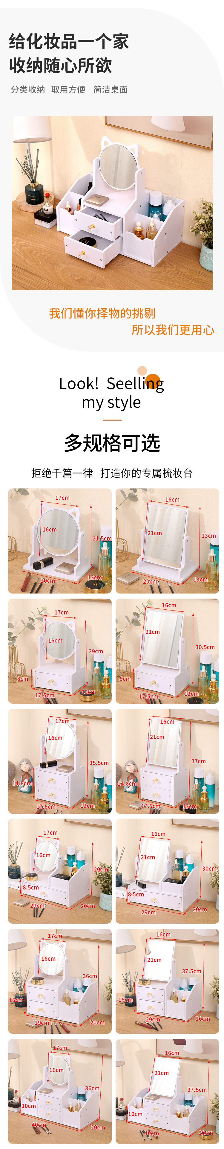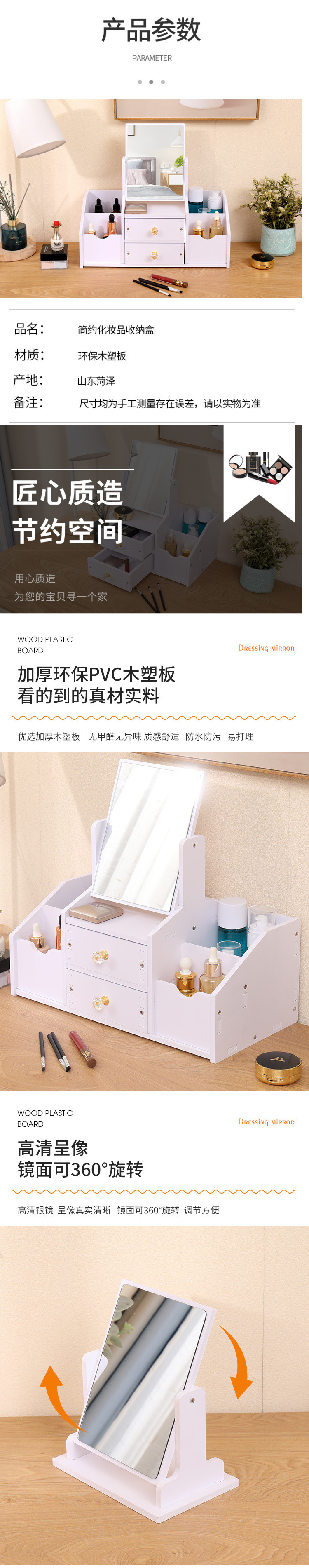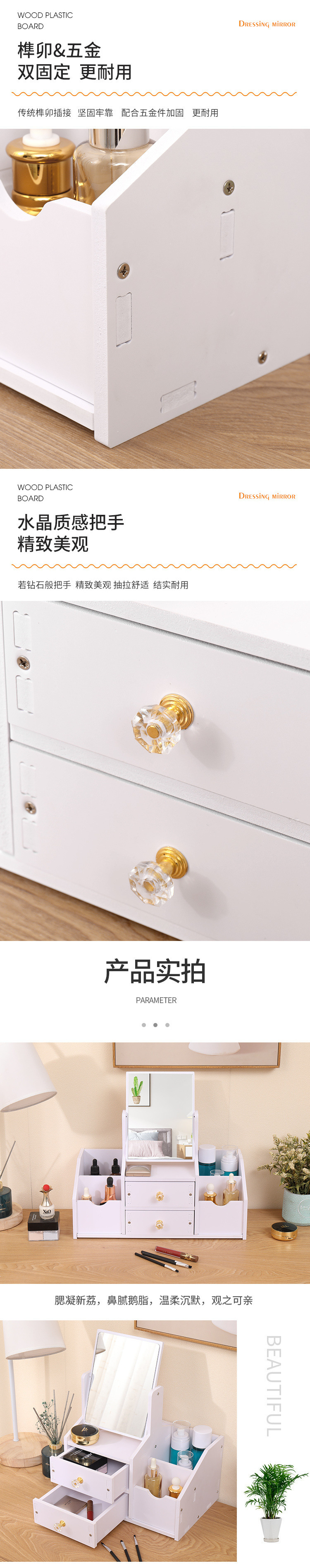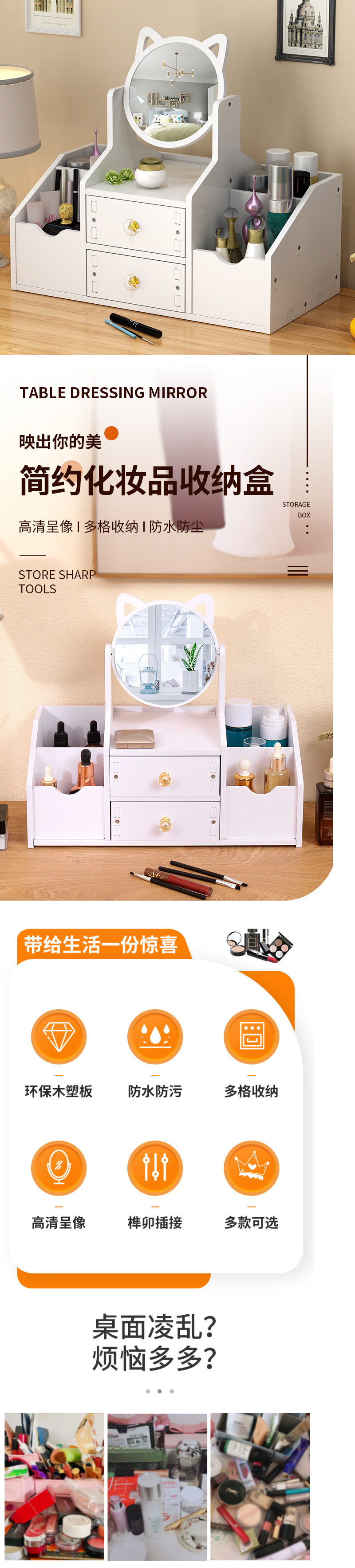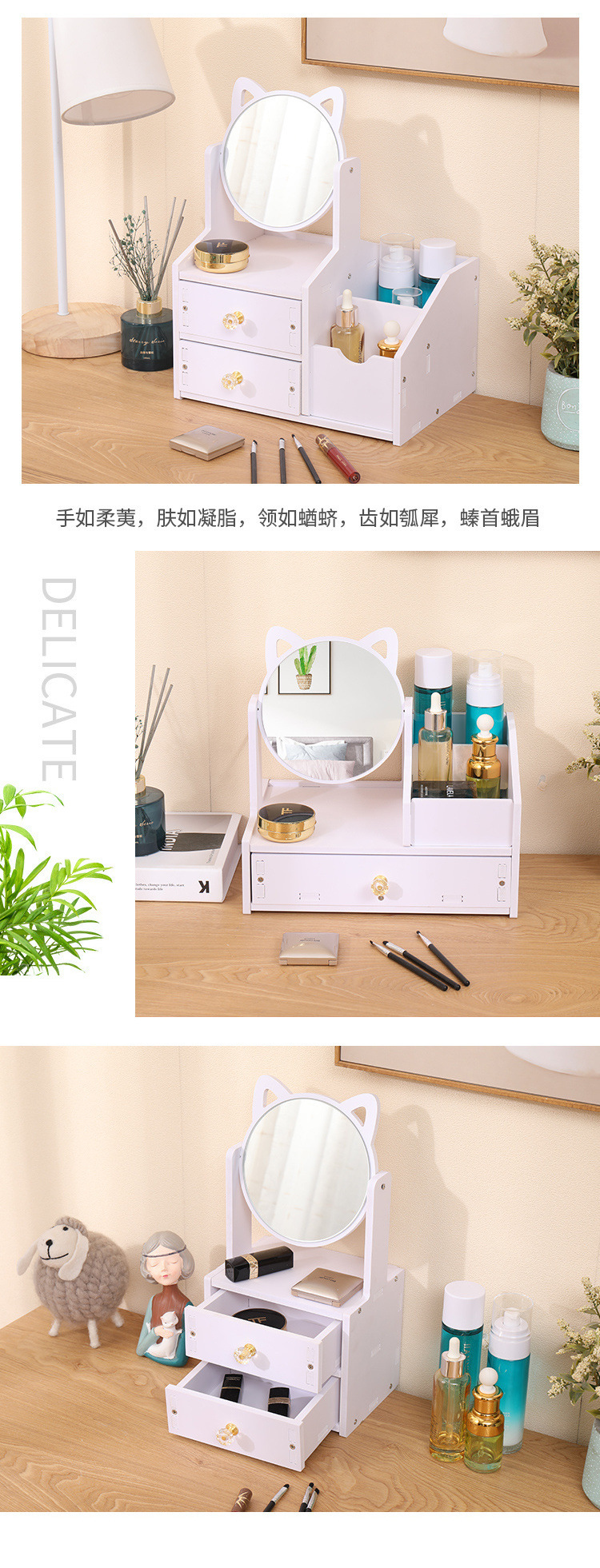 Caja de almacenamiento de cosméticos con espejo, tipo cajón, de gran capacidad, estante de almacenamiento para tocador de dormitorio, gabinete a prueba de polvo