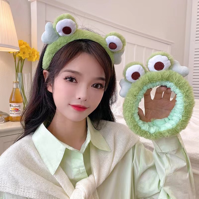 Caricatura verde rana correa de cabello mujer nuevo lindo gran ojo correa de cabello lavar la cara correa de cabello máscara de Navidad tocado