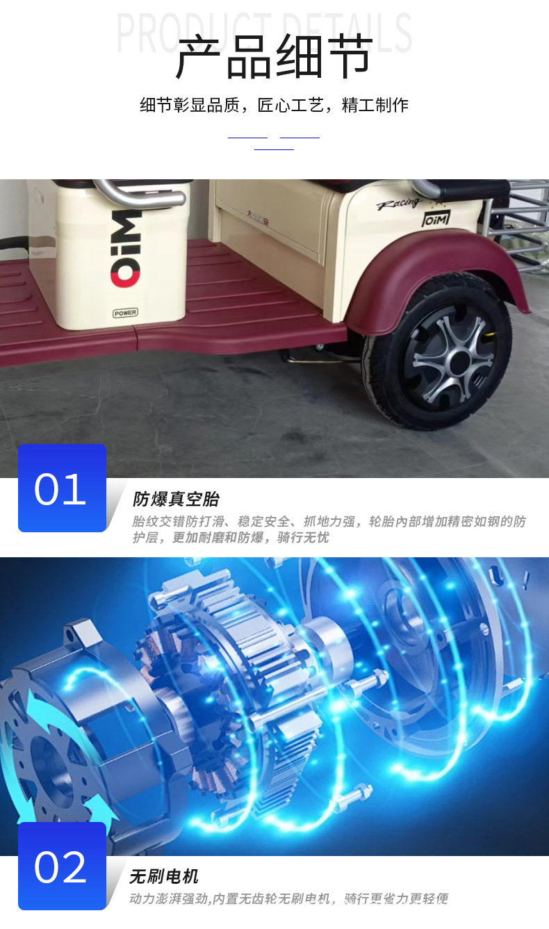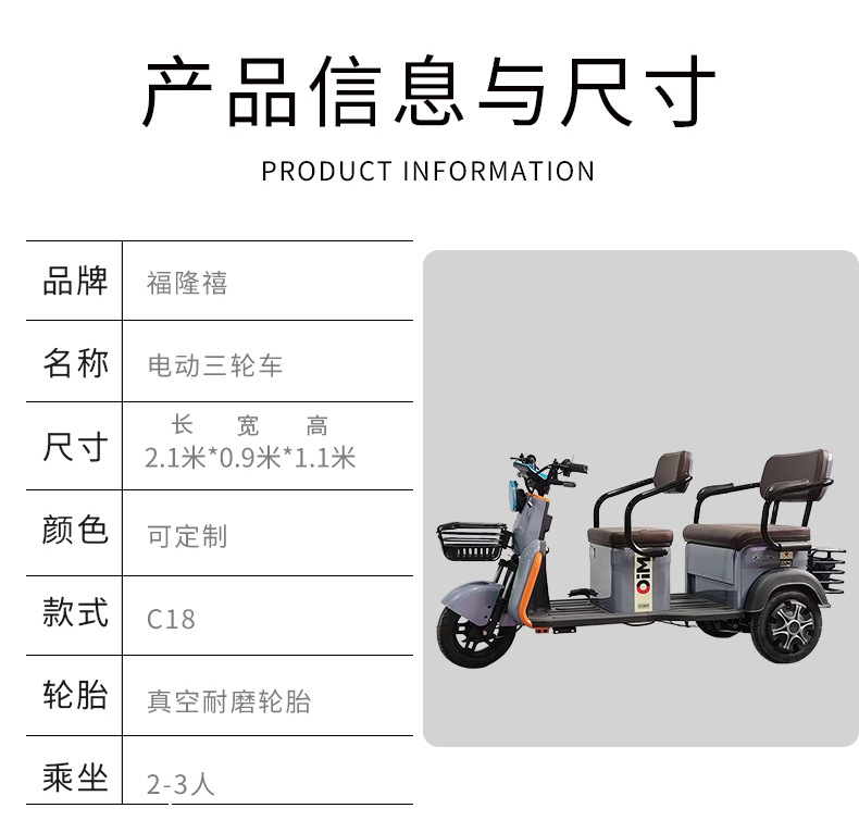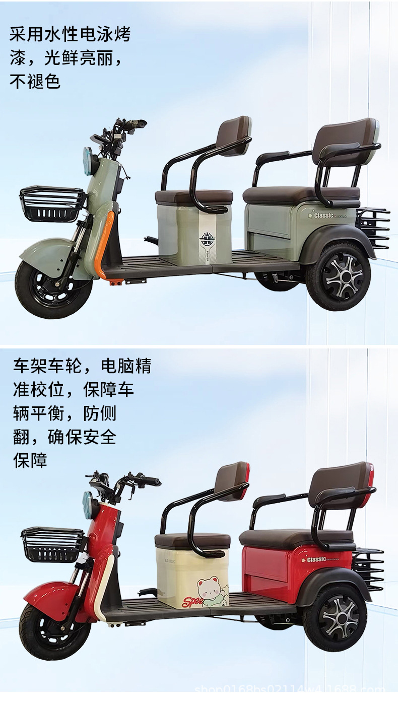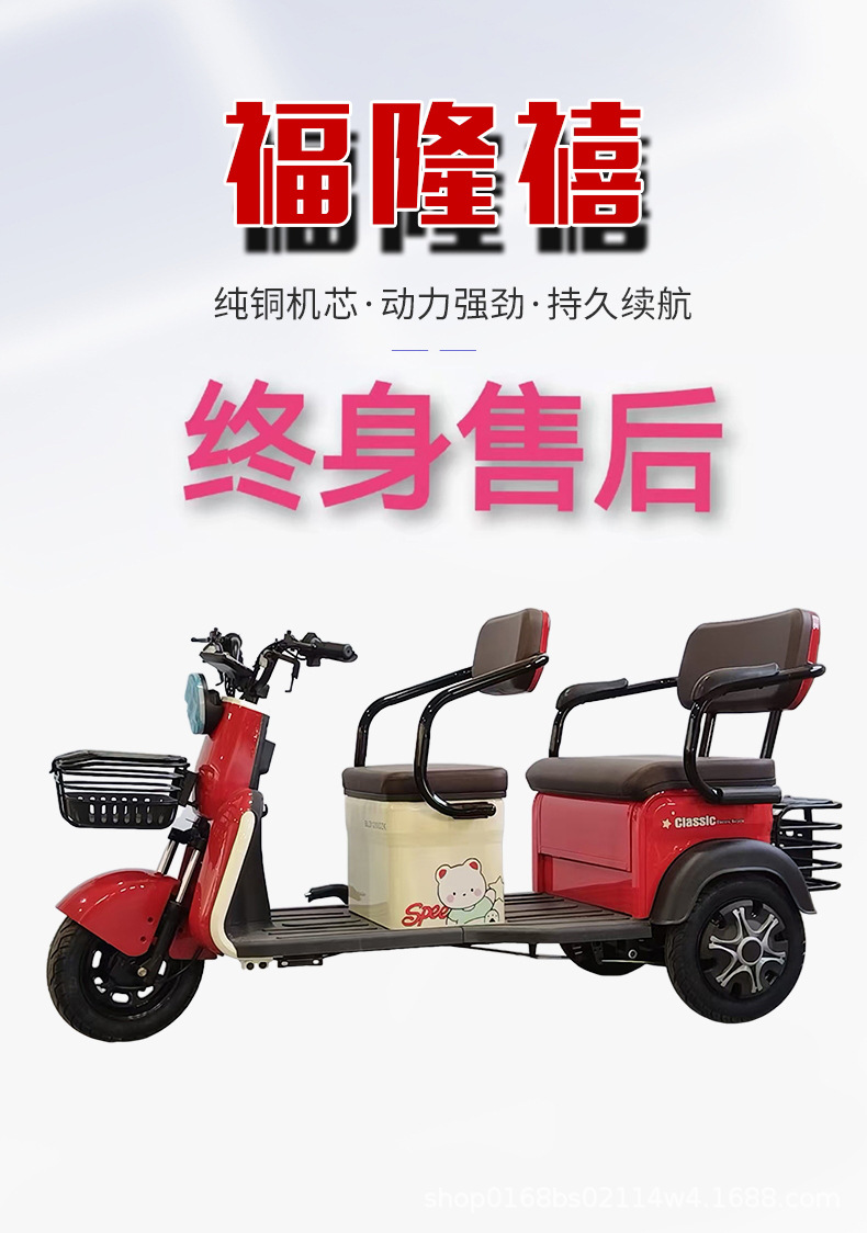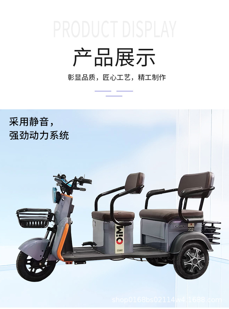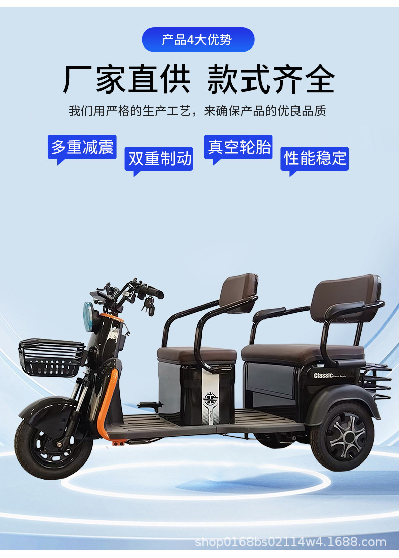 Triciclo eléctrico para recoger a los niños en casa, ampliar los asientos de doble fila, fuente de alta potencia, fábrica, triciclo de ocio para ancianos