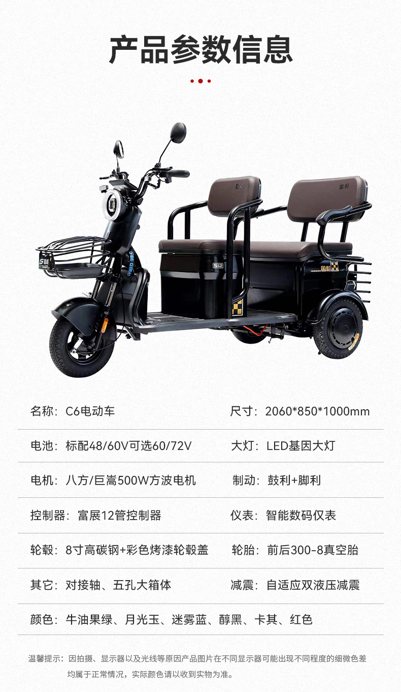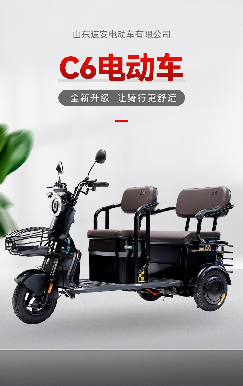 Exportación de comercio exterior C6 vehículo eléctrico asistido de edad avanzada scooter eléctrico familiar para recoger a los niños nuevo triciclo