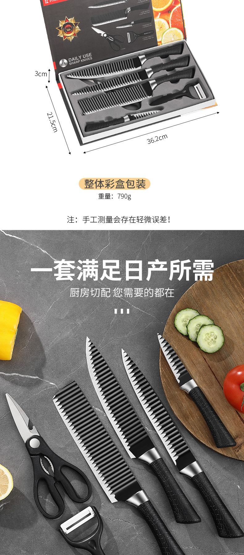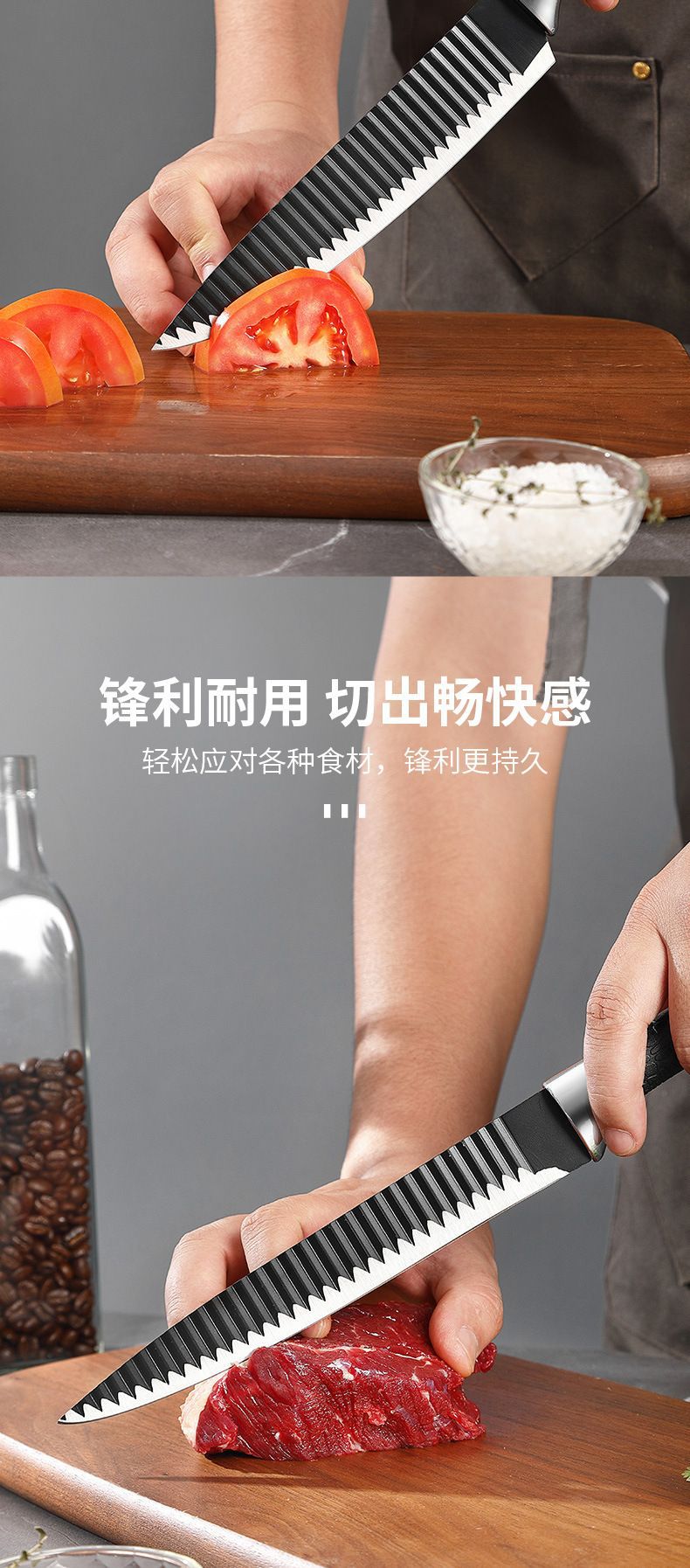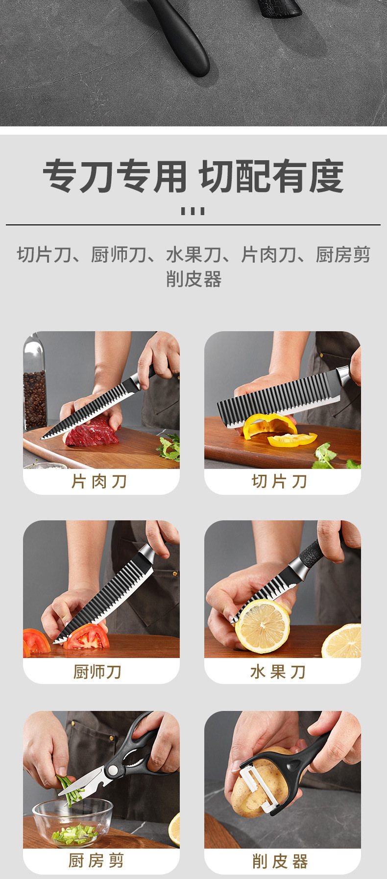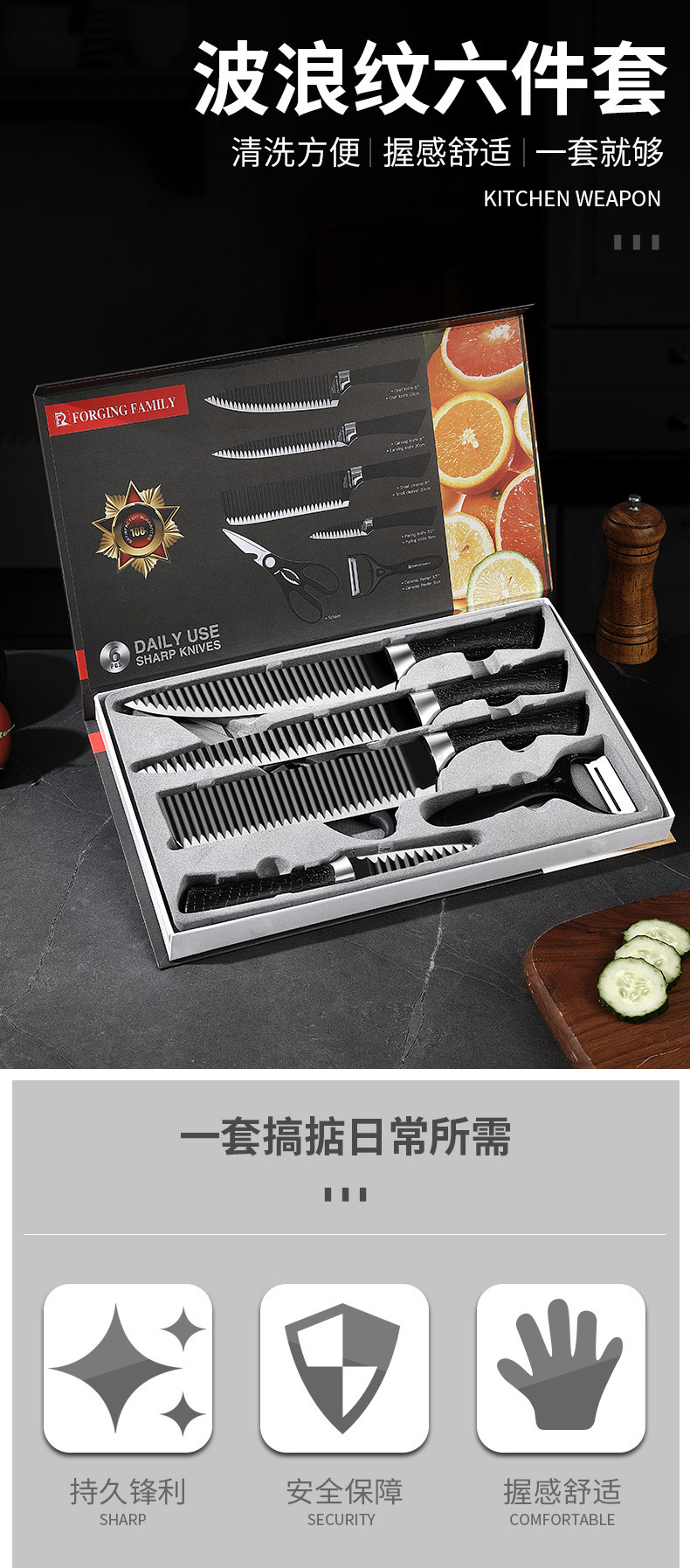Cuchillo de acero inoxidable ondulado cuchillo de 6 piezas de cocina cuchillo de cuchillo de cuchillo de regalo