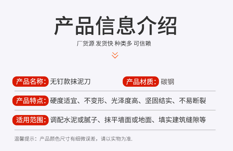 Tubería sin clavos, raspador de pared, espátula, espátula, espátula, acero inoxidable, acero al manganeso, placa de hierro, espátula, espátula, espátula