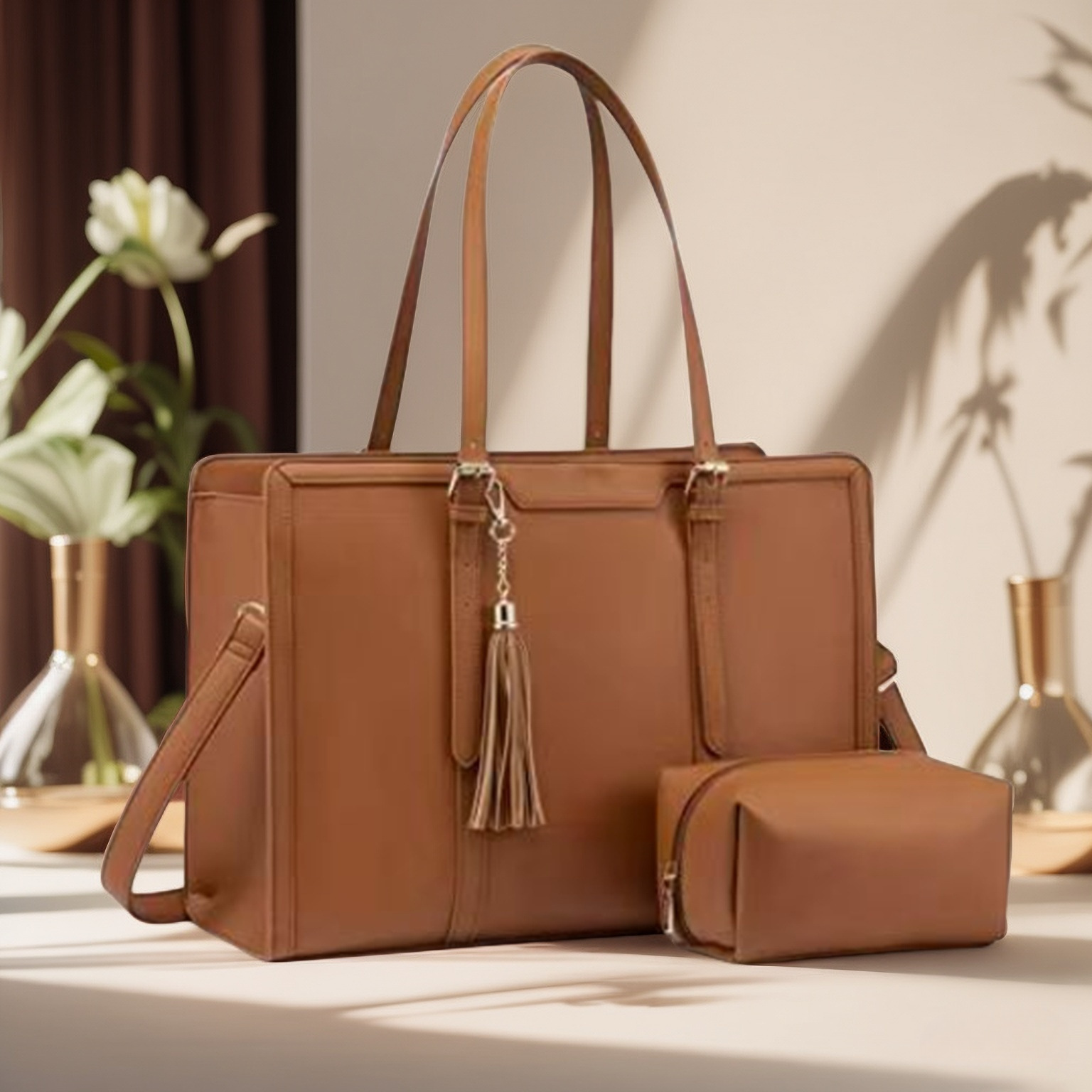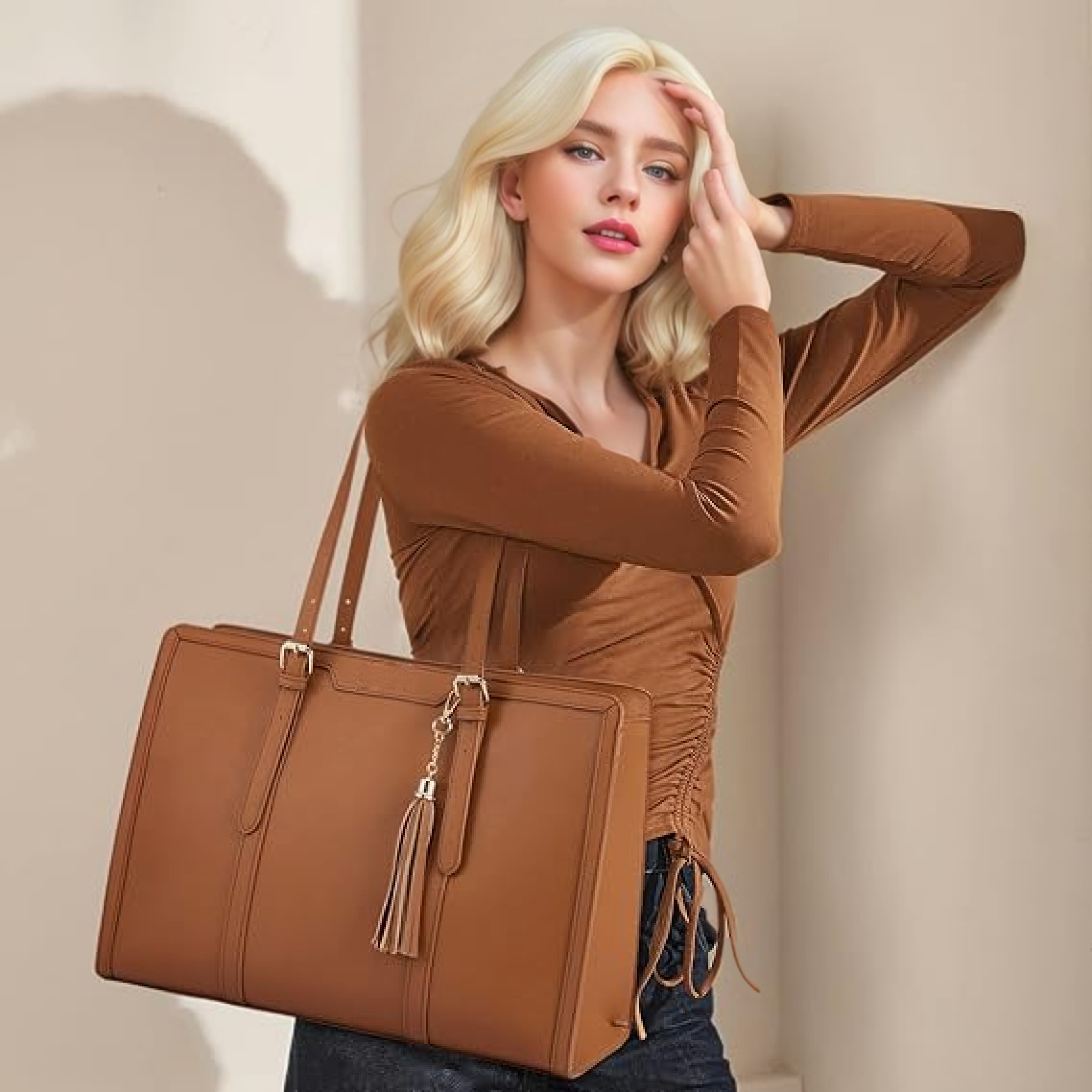 Bolso para computadora portátil para mujer transfronteriza europea y americana, bolso de cuero de 17 pulgadas, bolso de viaje de negocios