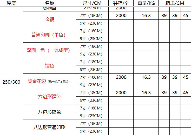 | Espesor | 250g 300g |