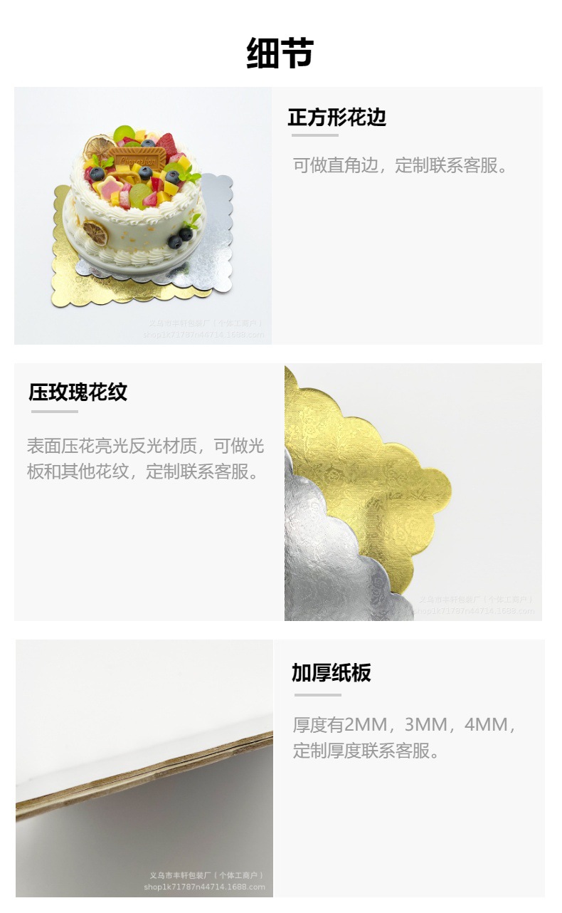 Base de pastel de papel engrosado cuadrado almohadilla bandeja de pastel plateada mousse de cumpleaños pastel de flip 2mm bandeja