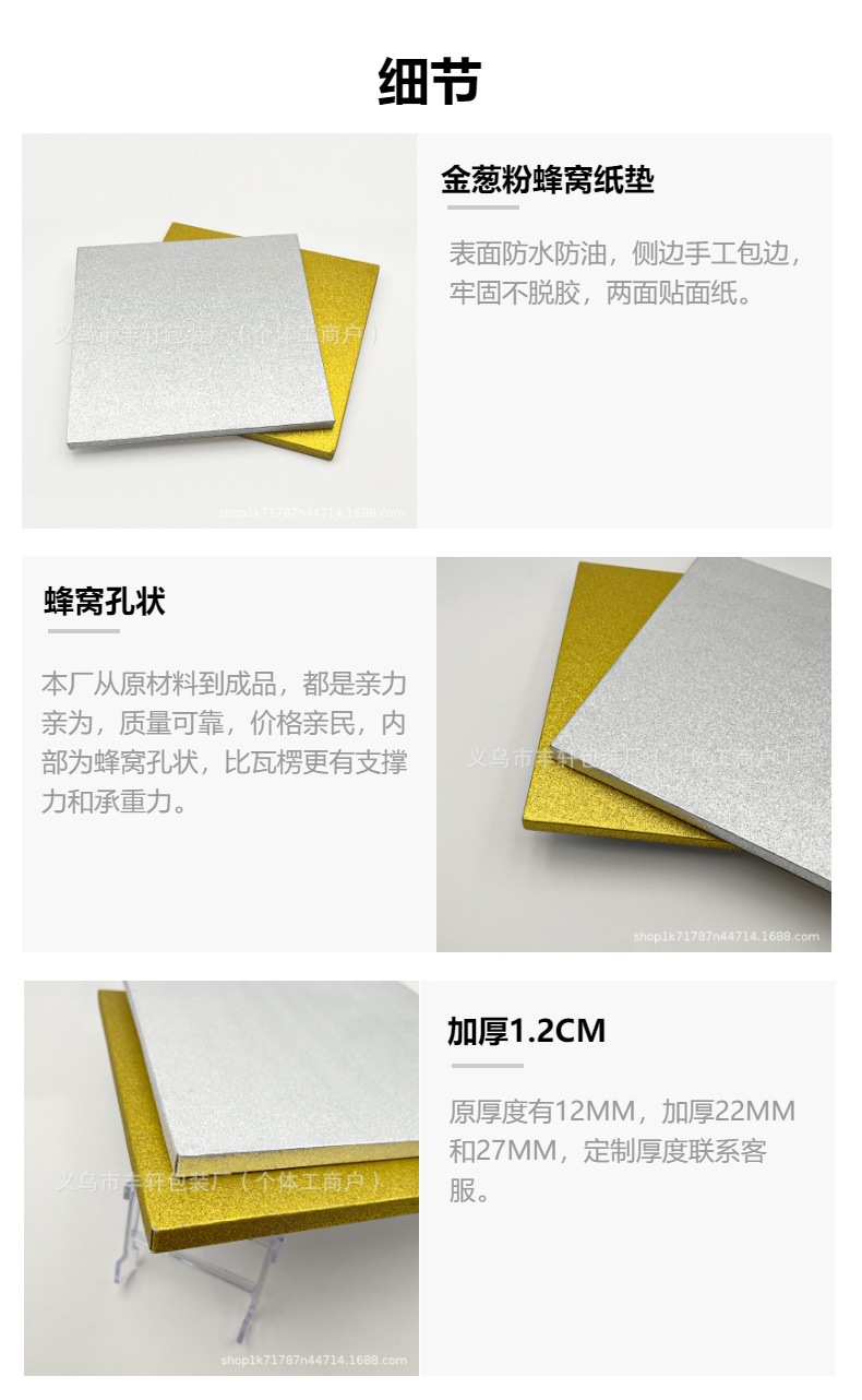 Embalaje de horneado, polvo de cebolla dorada, placa de pastel, placa de pastel al por mayor, bandeja de papel corrugado 1.2CM, almohadilla de pastel