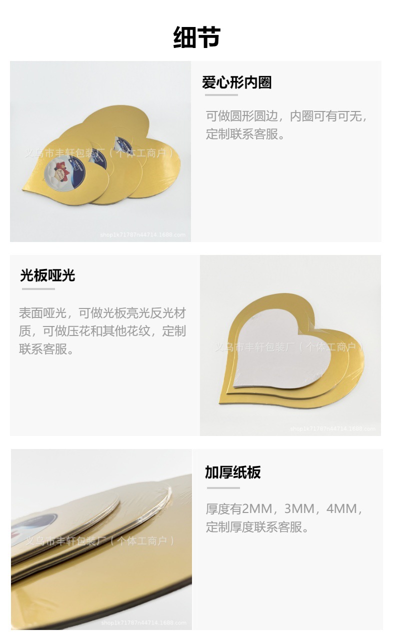 Amor en forma de corazón pastel base horneado embalaje de papel oro amor pastel de cumpleaños almohadilla base embalaje de fiesta