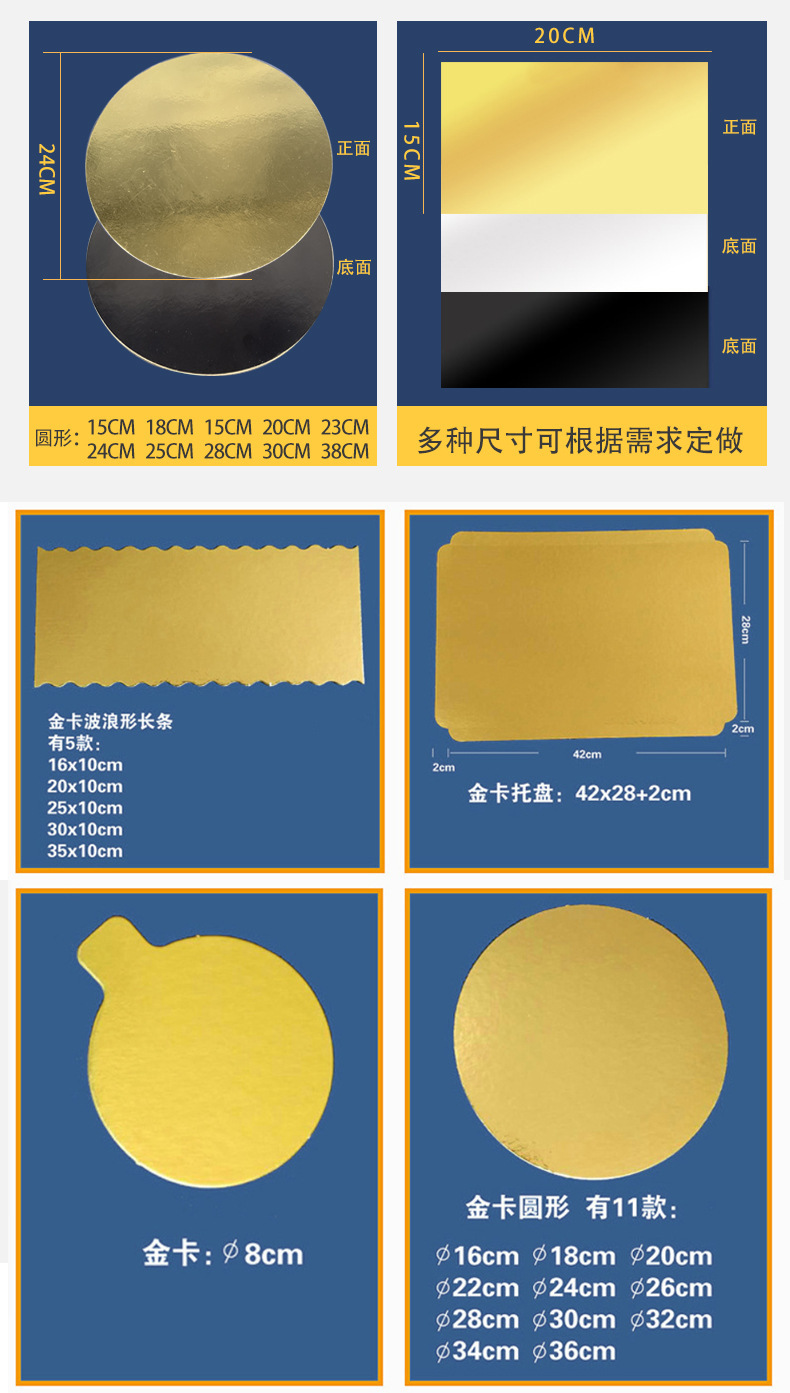 Mousse estera de postre tarjeta de oro patrón de estera de la torta de la tarjeta estera de oro cuadrado redondo triángulo de la torta almohadilla de papel soporte inferior